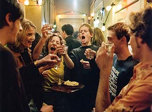 Und im dritten Film, von dem hier die Rede sein soll, Wir von Martin Gypkens (ebenfalls in Perspektive Deutsches Kino zu sehen), passiert eigentlich bis auf den für seine Verhältnisse schon äußerst fulminanten Schluss so gut wie nichts, außer dass der Film sehr gesprächig ist. Zehn junge Leute in Berlin reden fast unaufhörlich. In der Küche, auf der Straße, auf Parties, im Bett. Der Film gehört also zu der oben schon erwähnten Kategorie der Quasselfilme. Weshalb er sich natürlich fast folgerichtig für ein Prädikat von der Filmbewertungsstelle aus Wiesbaden eignet. Und das hat er dann auch bekommen, nämlich das Prädikat Besonders wertvoll. Die Begründung ist so bedeutungsschwanger nichtssagend wie so oft bei diesen Prädikaten, dass sie sich in diesem Fall hervorragend als Inhaltsbeschreibung eignet: Unaufdringliche, ungeschminkte und facettenreiche Momentaufnahme von einer Gruppe junger Erwachsener in Berlin, von ihren Beziehungen, von Sex, Drogen, von Hilf- und Perspektivlosigkeit. Ein Film von uns über uns. Hilf- und perspektivenlos?! Das schreit ja förmlich nach einen Kinobesuch, pardon: nach einem Fernsehabend.