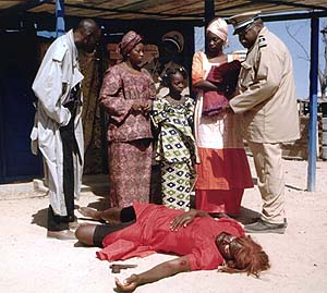 Moderne trifft auf TraditionMadame Brouette (Moussa Sene Absa, Kan./Senegal/Fr. 2002)Madame killed her no good husband, verkündet die Moritat am Anfang lakonisch. Mati (Rokhaya Niang) hat ihren nichtsnutzigen Gatten Naago (Aboubacar Sadikh Bâ) erschossen, als der betrunken von einer Festivität in die heimatliche Hütte taumelte. Rückblende: Mati, die sich als Madame Brouette mit einem Trödelkarren auf dem Markt über Wasser hält, hat ein ausgeprägtes Gerechtigkeitsempfinden. Als ihre Freundin Ndaxté (Kadiatou Sy) von deren Mann misshandelt wird, nimmt Mati sie bei sich auf und die beiden verfolgen nunmehr ohne Männer mit Pascha-Ansprüchen im Nacken ihren Plan einen Imbiss zu eröffnen. Matis Geschäftssinn schreckt dabei auch vor Schmuggel nicht zurück. Beim Verhör auf der örtlichen Polizeistation weiß sie den korrupten Polizisten Naago zu bezirzen, wird ihn dann aber so schnell nicht wieder los - bis zum finalen Schuss.