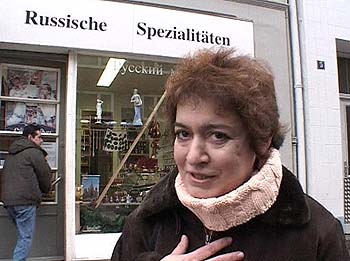 Leben in Deutschland: Irina Petrushyna vor dem russischen Spezialitätengeschäft im Kieler Jungfernstieg