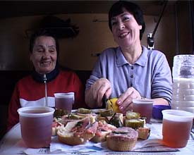 46. Nordische Filmtage LübeckInnenschau der draußen GebliebenenJarmark Europa (D 2003, Minze Tummescheit)Der Kalte Krieg ist überwunden und gerade deshalb befinden wir uns in einer Nachkriegszeit mit all ihren Verwerfungen. Und mit ihren wenn nicht schwarzen, so doch grauen Märkten. Der Jarmark Europa im Warschauer Stadion Dziesieciolecia ist so ein Basar, wo man sowohl die Kriegsgewinnler als auch die nach ein paar Brotkrumen vom großen Kuchen des europäischen Marktes greifenden Draußengebliebenen jenseits der neuen EU-Außengrenze trifft. Letzteren widmet sich Minze Tummescheits Dokumentarfilm, namentlich zwei Frauen aus dem weißrussischen Penza, die einmal pro Woche die fast 2.000 Bahnkilometer nach Warschau zurücklegen, um auf dem Jarmark Europa ihre Waren feilzubieten und sich so eine mühsame Existenz zu sichern.
