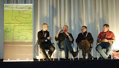 Filmhistorische Offenbarungen: Moderator Siegel im Gespräch mit Michael Epstein, Steven Bach und John Kirk (v.l.n.r.) (Foto: Berlinale)