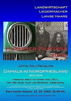 Der Film wird im Rahmen eines friesischen Abends am 25.10., 20 Uhr bei den Husumer Filmtagen präsentiert, eingeleitet von Minderheitenpolitiker Karl Otto Meyer, moderiert von RSH-Chefkorrespondent Carsten Kock, musikalisch begleitet von Da Säkstante und prickelnd erfrischt durch einen Sektempfang. |