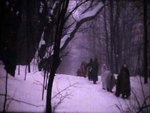 Still aus „Solstice“ Dass Ungerer immer schon Bilder als Arbeitsfläche begriff, die mit Händen zu greifen war, hat mit seinem Werdegang zu tun. Der 1935 in Harlem geborene Sohn deutscher Auswanderer begann in den 60er Jahren als Keramiker, Bildhauer und Maler. Angeregt von Jackson Pollock faszinierte ihn der Prozess der Herstellung. In den frühen Filmen hört man jetzt noch die Messer auf dem Material schaben. Es war Ungerers Art des Action Paintings. Seine Bildbearbeitung kratzt an den Geschichten. Ein kleines Märchen wird zu einem kleinen hässlichen Alptraum. Messer und Musik verkehren den ersten Eindruck ins sperrige Gegenteil und Fremdartige. 1969 siedelte Ungerer nach Vermont um. Einem wie ihm kam das raue Klima im Nordosten Amerikas gerade recht. Lieblich heiter ist es hier selten. Vielleicht sieht einer seiner bekanntesten Filme, „The Animal“ von 1976, deshalb so aus, als wäre er nie über den Rohschnitt hinausgegangen. Er verliert sich in langen Einstellungen im Schnee, in dem sich passenderweise auch die Hauptfigur verliert. Ungerer mag offenbar Schnee, der die Leinwand weißt, als wäre sie ein leeres Blatt, das man bemalen kann. Dabei ist Ungerer keineswegs entrückt. Immer lehrte er an Universitäten. Am 11. September 2001 ließ er seine Kurse sofort ausfallen, um sich eine Kamera zu schnappen und zum Ground Zero zu fahren. Sein Film „and all this madness“ mit Interviews und Impressionen gehört zu den ersten Filmzeugnissen, die versuchen, das medial schnell besetzte Ereignis in eine eigenständige Form zu bringen. Einen ästhetischen Quantensprung eröffnete ihm der Computer. Ungerers Arbeiten haben dadurch eine Schönheit bekommen, die man im störrischen Krikelkrakel der frühen Jahre kaum ahnen konnte. Ohne zum romantischen Greis zu werden, bekommen die Spätwerke des fast 70-jährigen eine neue poetische Feinfühligkeit, geleitet von Vogelgezwitscher („Birds“) oder Fensterblicken („Windows“). Trotz mancher elegischen Schwere in der Strandfantasie „Kingsbury Beach“ verraten sie eine ungebrochene kreative Frische, die man seinen Studenten nur wünschen kann.
