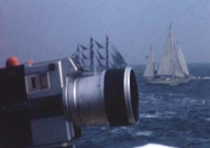 Zum Beispiel Dieter Schultz, Schmalfilmamateur seit 1957 und in den Fußstapfen seines Vaters, der im Jahr 1936 nicht nur wegen der olympischen Segelwettbewerbe zur Filmkamera griff, sondern weil im gleichen Jahr sein Sohn geboren wurde. Film nicht nur als Hobby, sondern als Geschichtsschreibung. So individuell verengt die sein mag, so zeigt sie doch das Private im Echo und Spiegel des öffentlichen Ereignisses. „Der Film gibt die Mentalität der Menschen zwischen den Meeren wieder“, sagte Grote im Interview mit dem schleswig-holsteinischen Zeitungsverlag (sh:z), der die Produktion des Films ebenfalls unterstützte. Die Bilder, die in ruckelnden 8 Millimetern über die Leinwand huschen, sind Legion, Segelboote auf Wasser vor blauem Himmel, Hafen-Sequenzen, alles eigentlich nichtssagend, weil schon tausende Male gesehen. Und dennoch: Eben diese Legion austauschbarer Bilder zeigt den privaten Blick, der zuweilen von der filmischen Kadrierung her, der vorgefundenen „mise en scène“, kleine Meisterschaften zeigt, besser, weil motivisch zugespitzt treffender, als mancher TV-Beitrag, den wir heute in der Berichterstattung über die Kieler Woche sahen und sehen werden.