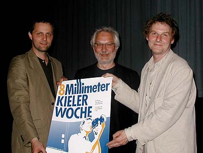 Die Filmemacher und -sammler Claus Oppermann (l.) und Gerald Grote (r.) und einer ihrer Förderer, Bernd-Günther Nahm, Kulturelle Filmförderung S.-H. (Foto: jm) „Warum eigene Filme drehen, es gibt schon so viele und die haben mit Menschen zu tun, das muss man bewahren“, sagt Gerald Grote im Gespräch nach der Premiere. „Unbekannte, bewegte und bewegende Privatheit“ nennt es Claus Oppermann. Das zu versammeln, was 33 Kieler Schmalfilmamateure in den Jahren von 1936 bis 2003 der Kieler Woche abfilmten, war Ziel des von der Kulturellen Filmförderung S.-H. und der Landeshauptstadt Kiel / Kieler Woche Büro geförderten Projekts. 7.254 Meter 8mm- und Super8-Material, rund 20 Stunden, wurden den beiden Filmemachern von Kieler Schmalfilmern eingesandt. Daraus, ergänzt um instruktive Interview-Sequenzen mit den Filmamateuren, haben sie einen 45-minütigen Dokumentarfilm gemacht, der neben der Kieler Woche vor allem die porträtiert, die ihr durch das Kameraauge über 70 Jahre folgten. Nicht zuletzt auch eine Hommage an die Dokumentatoren, deren privatem Blick auf das alljährliche Segel- und Kulturereignis bisher nur ihre Familien folgten.