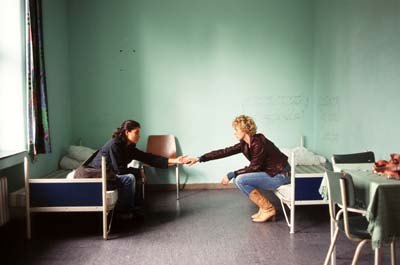 Berührung über die Grenzen zwischen zwei anderen Seiten: Liebespaar Aytan und Lotte (Foto: www.auf-der-anderen-seite.de) Fast auch als Lehrstück. Akin betont in Interviews, dass er sein gegenwärtiges Filmschaffen als „Hausaufgaben Machen“ empfindet. Hausaufgaben an den ganz großen Themen des eben nicht nur Abendlandes, sondern des Humanen überhaupt. In „Auf der anderen Seite“ gibt es dafür eindrückliche, ikonenhafte Bilder: Etwa wenn sich die Liebenden Ayten und Lotte in Aytens Asyl-Unterkunft über die Weiten zweier getrennter Betten die tröstende Hand reichen, wenn Susanne im istanbulischen Hotelexil, dessen Zimmer wir schon aus „Gegen die Wand“ kennen, am Leben und seinen Toden verzweifelt oder wenn Nejat am Filmende am Meer sitzt, dem Symbol für die ewige Reise, dafür dass Heimat, Ankommen immer nur da sein kann, wo man gerade, wohin man ganz existenzialistisch „geworfen“, von den Odysseen des Lebens gespült ist. (jm) „Auf der anderen Seite“, D 2007, 122 Min., 35 mm. Buch/Regie: Fatih Akin, Kamera: Rainer Klausmann, Schnitt: Andrew Bird, Produktion: Corazón International, Verleih: Pandora Film. Gefördert u.a. von der Filmförderung Hamburg, Kulturelle Filmförderung S.-H., Nordmedia, FFA, BMFK. |