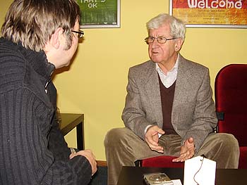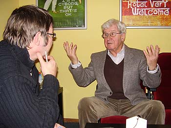 Das heißt, Sie verleihen da Woody ihre ureigene Stimme? Ja. Die Zuschauer sind einfach an meine Stimme gewöhnt, da muss ich es so weitermachen. Was soll ich mich da verstellen? Wie ist die Zusammenarbeit mit der jeweiligen Dialogpartnerin, z.B. Traudel Haas? In den letzten Jahren ist man gar nicht mehr zusammen im Studio. Ich habe meine Rollen immer alleine gesprochen. Besser war es früher, wo wir zusammen im Studio waren, da kann ich ihre Töne abnehmen. Wenn man nur seinen Satz sagt und ihren nicht hört, muss man natürlich ihren Satz wie sie den sagt immer im Kopf haben. Wie wichtig ist eine Schauspielausbildung für das Synchronisieren? Die ist sehr wichtig. Die Substanz eines Schauspielers, die er am Theater erfährt, bringt er mit ins Synchronstudio. Jemand, der bloß Sprecher ist, kann die Zwischentöne nicht bringen. Das hat sich heute im Synchrongeschäft verändert, da glaubt jeder, dass er es kann. Machen Sie lieber Hörspiel oder Synchronsprechen? Ganz klar Hörspiel. Da hat man freie Hand, da muss man nicht das machen, was der da oben auf der Leinwand macht. Man muss nicht auf Synchronität achten. Ich kann frei sprechen, ich kann die Rollen frei gestalten. Wenn ich einen schlechten Schauspieler synchronisisere, werde ich immer schlecht sein. Hörspiel ist gegenüber Synchronsprechen eine echte Erholung. Deshalb habe ich das immer ganz gern gemacht. Synchronisieren ist für mich erfunden worden, denn ich bin jemand, der gern im Dunkeln arbeitet, der die Öffentlichkeit scheut stellen Sie sich mal vor, ein Schauspieler, der die Öffentlichkeit scheut, der nicht im Mittelpunkt stehen will, der kein Selbstdarsteller ist, der kann doch keine Karriere machen. Ich habe mich ins Dunkle verzogen und bin daraus auch nicht wieder aufgetaucht. (Das Interview führten: jm, dakro, Fotos: dakro) Teile des Interviews als MP3, mono (in begrenzter Tonqualität) finden sich hier. |