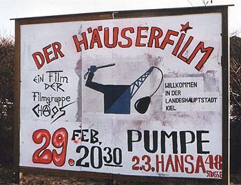 „Der Häuserfilm“ wird im KoKi Kiel wiederaufgeführtDas Kommunale Kino hat einen Dokumentarfilm zum Film des Monats gemacht. Es geht um ein ein Dokument Kieler Stadtgeschichte und die miltanten Proteste der frühen 80er Jahre. Kiel hatte Anfang der 80er eine ganze Reihe besetzter Häuser. Die Filmgruppe Chaos näherte sich diesem Phänomen mit Super-8 Kamera und tragbarem Tonbandgerät. Was als Kurzflilm geplant war, verselbstständigte sich. Einige der Filmer zogen in die besetzten Häuser ein, richteten sich einen Arbeitsraum ein und eröffneten ein Super-8 Kino. Das Material wuchs unablässig und erst die Räumung der Häuser ermöglichte 1984 die Fertigstellung des mehr als zweieinhalbstündigen Dokumentarfilms „Der Häuserfilm“.
