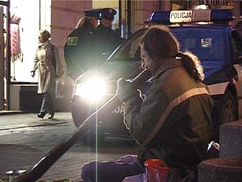 Roadmovie für ein Didgeridoo„from Kiel to east of Warsaw“ (D 2008, Moses Merkle, Elisabeth Saggau)Ein Mann mit seltsamen Röhren im Rucksack zieht durch die Straßen von Kiel, kommt an eine Polizeisperre. Nein, hier gibt es keinen Durchgang, denn die Polizei schützt gerade eine Nazi-Demo vor den antifaschistischen Gegendemonstranten. Die eigene Stadt scheint Phil Conyngham plötzlich fremd, noch ein Grund, mal wieder in die Fremde zu ziehen, denn in der Fremde warten neue, lehrreiche Erfahrungen. Der gebürtige Australier Phil Conyngham ist einer der wenigen (nach eigenem Verständnis) Rockmusiker, die das Didgeridoo jenseits vom traditionellen Gebrauch bei den australischen Aborigines spielen, es mit Techno- und „Noise“-Klängen verbinden. Als solcher ist er in der ganzen Welt herum gekommen, spielte auf zahlreichen Konzerten mit musikalischem, aber durchaus nicht finanziellen Erfolg. So erwischt ihn auch die Einladung zu einem Festival in Polen gerade auf dem Tiefpunkt seines Kontostands. Doch Phil will unbedingt nach Polen reisen das Geld dafür erspielt er sich als Straßenmusiker. Die Straße ist ohnehin sein Konzertraum, wie der Dokumentarfilm „from Kiel to east of Warsaw“ zeigt. Die Kieler Filmemacher Moses Merkle und Elisabeth Saggau sind in Conynghams schrottreifen Tourbus mit eingestiegen, um ihn auf der Reise von Kiel über Berlin und Warschau nach Ciechanowiec mit Kamera und Mikro zu begleiten. Entstanden ist ein Roadmovie mit teilweise psychedelischen Kameraeindrücken, ein Porträt weniger des Musikers Phil Conyngham als einer existenzialistischen Lebensform von, mit und in Musik.