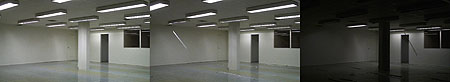 Die Schweizer Künstlerin Delphine Reist zeigt ein Video von einem mit Neonröhren erleuchteten Raum. Eine nach der anderen fallen die Neonröhren mit lautem Krach zu Boden, bis der Raum dunkel und das Video schwarz ist.
