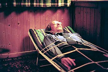 Nach so viel Vorankündigung sollte man ja wohl langsam zur Sache kommen, obwohl das der Film mit jeder Filmminute weniger tut. Nun denn: Zwei junge Frauen, entführen gekonnt unbeholfen mit Aha-Effekt den Boss von der Telekom (Rainer Knepperges), wohl den Nachfolger von Ronald Sommer. Eh er das so richtig mitbekommen hat, landen sie mit ihm in einem entlegenen Ferienhaus, werfen sein Handy und seine Wagenschlüssel weg, bedrohen ihn, als er fliehen will, mit einer Bratpfanne, schläfern ihn mit Tabletten ein und schreiben dann, sehr unprofessionell, zusammen mit einem Freund (Mario Mentrup), der inzwischen auch eingetrudelt ist, einen Erpresserbrief an die Telekom, in dem sie für die Freilassung von Herrn Harald Winter (das soll wohl urkomisch wirken: von Sommer zu Winter, ganz toll!) die Wiederaufstellung der alten gelben Telefonzellen in ganz Deutschland binnen einer Woche fordern. Von der Entführung bekommt ganz Deutschland bis auf den Sicherheitsbeauftragten der Telefongesellschaft, Herrn D. Korn, herrlich chargiert von Altfilmer Klaus Lemke, und seinen unsichtbar bleibenden Mitarbeiter für lange Zeit nichts mit. Der Entführte kann die Sache zu Beginn kaum ernst nehmen, ist verärgert, beleidigt, fügt sich später aber immer williger in das traute Idyll ein, das seine amateurhaften Kidnapper für ihn ganz unbedarft veranstalten. Ein richtiges Ende hat der Film: Das rührende Quartett flieht zum Schluss durch den Wald irgendwo oder auch nirgendwo hin - bedroht von der Telekom? Ja, und womit werden nun die meisten der 81,3 Filmminuten gefüllt? Na, mit netten Alltagsgesprächen, spätpubertären Neckigkeiten, kleinen Modeschauen, Tänzen auf Krücken, Musik aus den 70er Jahren usw. |