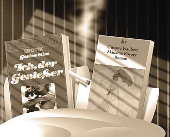 Melodram unter BüchernIn Gerald Grotes Kurzfilmprojekt Tödliche Roman(z)e sind die Protagonisten Bücher.Wenn der Kieler Autor Gerald Grote seine Grote-sken schreibt, gerät die Wortspielmanie zuweilen filmisch: Eine Taschenbüchin fragte verliebt einen dicken Schmöker, ob sie sich nicht beide irgendwo im Regal mal allein und ungestört treffen könnten; nein, entgegnete der Angesprochene, er sei gebunden. Das ist ein Film!, wusste spontan Grotes langjähriger Weggefährte Karsten Weyershausen, Co-Autor und Illustrator, der auf web.de täglich den Cartoon-Stift spitzt. Thomas Plöger, Kieler Filmemacher, den der umtriebige Grote bei den Nordischen Filmtagen kennengelernt hatte, ergänzte sofort: 35 Millimeter und Schwarz-Weiß! Eine Kurzfilmidee im großen Format war geboren, zu der man Kameramann und Filmemacher Claus Oppermann (Duo in utero) nicht lange bitten musste.Jetzt sitzt das Trio Grote-Weyershausen-Oppermann am Kaffeetisch und geht nach zwei Tagen Löten an Drehbuch und Storyboard seiner Lieblingsbeschäftigung nach: Kalauern. Du hältst die Klappe und du spielst keine Rolle, verteilt Grote fotogene Filmutensilien an seine Kompagnons, als es zum Fototermin ins Antiquariat Eschenburg geht. Dort, wo die Bücher ihre Rücken in Regale bücken, könnte der Schinken spielen, den die Drei im Kopf haben und dessen Produktion die MSH jüngst mit 20.000 Euro Filmfördergeldern bedachte. Ein Meldodram im Stil der 40er/50er Jahre, à la Frau ohne Gewissen von Billy Wilder oder Hitchcocks Rebecca. Doch Madame Bovary, die sich an ihrem treulos hochstapelnden Gatten Felix Krull mit allerlei verhängnisvollen Affären rächen will, bis ein Regalsturz einem Buch das Rückgrat bricht - querschnittsgelähmt ab Seite 43, werden nicht mit Schauspielern besetzt. In Tödliche Roman(z)e sind die Bücher selbst die Akteure. Im ersten Animationsfilm ohne Animation, so Grote, werden keine knetgummi-animierten Bücher durch Regale wackeln. In Bewegung sind nur Oppermanns Kamera, die Beleuchtung (vielleicht doch in Technicolor?), schnelle Schnitte und Franz-Josef Steffens Sprecherstimme, die aus dem Off die Geschichte um Ehebruch, Mord und Totschlag erzählt. Die Wieder-Kielerin Maren Jaenisch, die schon Lars Büchels Filme ausstattete, bereitet die Bühne im Regal, eine sündige Buch-Bar und Mike Hammers Detektei. Für den Schwarze-Serie-Ermittler hat Karsten schon die stets qualmende Zigarette zwischen den Buchdeckellippen entworfen.Ein Experiment, ein Angriff auf Augen und Ohren - filmischer Ausgang noch unbekannt, außer: Kein Happy-End! Wenn man das Melodram überzeichnet, wird es komisch, ahnt Karsten und Claus schwärmt von den visuellen Wechselwirkungen zwischen Bild und Text. Das Trio gerät in interpretatorische Rage: Ein Buch trägt Leben in sich, das wir im Filmbild erwecken. Gerald denkt geschäftlich: Auch als Präsentation für Buchmessen denkbar. Einfache Form mit komplexem Inhalt, kontert Karsten. Und Claus hat den unterirdischen Kalauer dazu bereits auf der Zunge: Wird schließlich kein Schmal-Film.Der muss eigentlich nur noch gedreht werden, denn das Storyboard legt schon alles haarklein fest. Im August gehts los. Inklusive Schleswig-Holstein-Effekt, denn auch den Buddenbrooks werden im büchernen Melodram ganz neu gespannte Seiten aufgezogen ... (jm)zurück zum Inhalt |