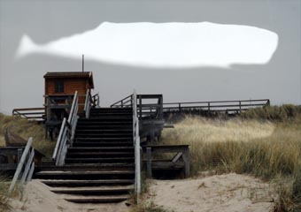 Premiere Wal unter PalmenAm 28.12.2003 um 15 Uhr wird Wal unter Palmen, der neueste Kurzfilm von Eva-Maria Kitzler (gefördert von der Kulturellen Filmförderung S.-H.) auf Sylt uraufgeführt und zwar an der Haupttreppe Rantum (Strandstraße), Nähe Strandmuschel.Nicht weit von dort entfernt strandeten im Dezember 1997 zwei Pottwale, Ausgangspunkt für den Film, in dem das Schicksal zweier Pottwal-Skelette in Zusammenschau gebracht wird: Eines auf Melvilles imaginärer Südseeinsel Tranque und eines auf der Nordseeinsel Sylt.Fotos und Videoaufnahmen, die auf Sylt entstanden, wurden dazu mit Fotos aus dem Hamburger Museum für Völkerkunde und dem Zoologischen Museum Göttingen verknüpft, sowie mit Fundstücken und Fotogrammen von Postkarten, Tierbüchern und Reisekatalogen zu einer Filmcollage zusammengestellt.Da Wal unter Palmen immerhin 14 Minuten lang ist, wird Filminteressierten zu warmer und wetterfester Kleidung geraten.Wal unter PalmenWie eitel und töricht, dachte ich, sind diese einfältigen, beschränkten Menschen, die den wunderreichen Wal zu verstehen trachten, indem sie sich in das tote, ausgemergelte Skelett versenken. (Herman Melville: Moby Dick oder Der Wal) Filmheld ist das Skelett eines gestrandeten Pottwals und das gleich in einer Doppelrolle: Mal in der Südsee, gestrandet auf der von Melville erdachten Palmeninsel Tranque, wo seine Knochen ehrenvoll wiederaufgerichtet und als Tempel benutzt werden, und dann in der Nordsee, gestrandet an der realen Insel Sylt, wo seine Knochen nach mühevoller Putz- und Bergungsarbeit letztendlich in einer Scheune vor sich hin rotten.Die Südsee-Sequenzen wurden im Hamburger Museum für Völkerkunde fotografiert und mit Hilfe von vorgefundenem Material wie z.B. Bildern aus Reisekatalogen visualisiert. Ein Sprecher nimmt die Rolle des Melvillschen Moby Dick-Erzählers Ismael ein und liest Abschnitte aus den entsprechenden Knochen-Kapiteln vor.Die Nordsee-Sequenzen setzen sich zusammen aus Echtzeitvideo, Inselfotos und vorgefundenem Material wie z.B. Postkarten, von denen Fotogramme gemacht wurden. Souvenirs und Perlenketten an Drehständern in der Sylter Fußgängerzone werden kombiniert mit Perlenketten und Souvenirs aus dem Südsee-Schatz des Völkerkunde-Museums.Die Vorkommnisse auf Sylt werden nicht von einem Sprecher erzählt, sondern von Texttafeln erläutert, wobei diese Texttafeln immer den Dialog mit Ismael suchen. Paradiesische Hula-Musik gibt es hier wie dort.zurück zum Inhalt |