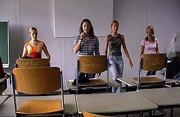 Premiere: Pausenmusik - der Hit aus der SchuleAm 24. Februar, 20 Uhr hat im Hamburger Kino Lichtmess (Gaußstr. 25, 22765 Hamburg, www.lichtmess-kino.de) der Dokumentarfilm Pausenmusik - der Hit aus der Schule (D 2004, DV, 45 Min.) von Doro Carl Premiere.Wie schreibt man in einer Woche einen Song? In Schenefeld und Dresden gerät der Schulalltag aus den Fugen. Bei der Entwicklung eines eigenen Stücks - von der Themenfindung über die Ausarbeitung musikalischer Ideen und eigener Texte bis hin zur Aufnahme einer CD - entwickeln die SchülerInnen ungeahnte Fähigkeiten.Der Dokumentarfilm porträtiert Schülerbands bei der Projektwoche SchoolTour, einer Initiative der deutschen Phono-Akademie in Zusammenarbeit mit der Bundeszentrale für politische Bildung. Die Band Abno Das Auditorium in der Aula Hören und dann singen: Pausenmusiker EddyMit den Schülerbands Abno, Die Experten, Die glorreichen 8, VIPs und TeilnehmerInnen der SchoolTour an der 15. Mittelschule Neustadt in Dresden und der RGH Schenefeld in Schleswig-Holstein. Musikpädagogen/Komposition: Thorsten Neubert, Johannes Baumgärtel. DJ-Hildegard, Sylvia Rathai. Regie, Kamera, Schnitt: Doro Carl. Ton: Jens Röhm, David Buob, Stefanie Busch. Tonmischung/Lichtbestimmung: Mark-Colin Böhm. Titeldesign: Ute Storm. Produktion: abz abbildungszentrum ohg, Kerstin Isenbeck, Jan Peters. Gefördert durch die Kulturelle Filmförderung Schleswig-Holstein.zurück zum Inhalt |