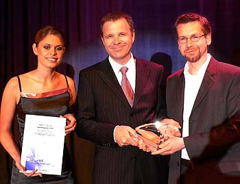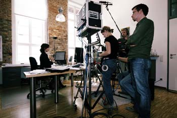 Flensburger Forward Film & Medien GmbH & Co. KG gewann „Intermedia-Globe-Silver 2007“In einem feierlichen Festakt im Delphi Showpalast in Hamburg wurden die Gewinner des World Media Festivals geehrt. Der Preis gilt als eine der höchsten Auszeichnungen für moderne audiovisuelle Kommunikation. In der Kategorie „Public Relation/Image“ wurde der Film „Hier zu Hause“ der Flensburger Filmproduktion Forward Film & Medien mit Silber ausgezeichnet.![]() Dirk Buhmann, Vertriebsleitung sh:z (Mitte) und Sönke Lassen, Regisseur und Geschäftsführer Forward Film & Medien (rechts) bei der PreisübergabeDer Imagefilm über den Schleswig-Holsteinischen Zeitungsverlag (sh:z) setzte sich unter 487 Beiträgen aus 22 Nationen durch. Die Preisträger des World Media Awards gehören zu den Führenden ihrer Branche, u.a. finden sich Großunternehmen wie Vodafone, Daimler-Chrysler AG, Television Espanola, Mitsubushi, SAP, Vattenfall, Siemens, Volvo und Ikea unten den Gewinnern in insgesamt 14 Kategorien. ![]() Regisseur Sönke Lassen (rechts) bei den Dreharbeiten„Ein Tag in Schleswig-Holstein. Ein Tag im Leben von ganz unterschiedlichen Menschen, die alle auf ihre Weise miteinander und mit der Zeitung in Verbindung stehen. Wie wird eine Zeitung hergestellt? Auf welche Weise sind die Teilbereiche eines Verlages miteinander vernetzt? Von der Suche nach der richtigen Geschichte bis zum gedruckten Werk verfolgen wir die faszinierende Produktion der Tageszeitung des sh:z“, so Sönke Lassen, Autor und Regisseur. ![]() Titel aus dem Film ![]() Still aus dem Film: Karolin (Lea Korneffel) bei der Preisverleihung ![]() Still aus dem Film: Der Kieler Redakteur telefoniert mit seinem Flensburger Kollegen (rechts: Gerald Pfaff, links: Kai Müllenhoff)Die internationale, unabhängige Fachjury in Europa und Übersee beurteilte alle Beiträge nicht nur nach ihrer kreativen und technischen Ausführung, sondern insbesondere danach, wie gut sie ihre Zielgruppen ansprechen.„Wir sind sehr stolz diese Auszeichnung erhalten zu haben. Unsere Besucher im Druckzentrum bestätigen immer wieder mit Beifall die Erstklassigkeit dieses Films“, bestätigt Dirk Buhmannn, Vertriebsleiter des sh:z. Schleswig-Holsteins größter Zeitungsverlag zeigt diesen in HD (High Definition) produzierten Film als emotionale Einführung bei Besucherführungen im eigens hierfür eingerichteten Medienraum im Druckzentrum in Büdelsdorf.(nach einer Pressemitteilung der Forward Film & Medien GmbH & Co. KG)zurück zum Inhalt |