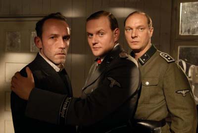 57. Internationale Filmfestspiele Berlin - Berlinale 2007Redliche Fernsehkost im Wettbewerb„Die Fälscher“ (Stefan Ruzowitzky, D/Ö 2007)Berlinale, unter dem Festivalchef Dieter Kosslick bedeutete das bisher immer die Förderung besonders des deutschen Films, auch und vor allen im Wettbewerb. In den letzten Jahren wurde das durch die Teilnahme von drei bis vier Filmen in dieser am höchsten gewichteten und meisten Beachtung findenden Festivalsparte deutlich. Auffällig war deshalb diesmal, dass es nur zwei deutsche Filme im Wettbewerb zu sehen gab. Und auch die Sektion „Panorama“, die noch im vorigen Jahr mit hiesigen Spielfilmen am Abend im Zoopalast nur so gestrotzt hatte, begnügte sich dieses mal mit nur einem heimischen Spielfilm in diesem Festivalkino („Ferien“ von Thomas Arslan). Dem verdutzten Betrachter drängte sich da die Frage auf, ob es nicht andere potente Bewerber gab oder ob den Auswahlgremien die Qualität der deutschen Angebote nicht genügte.Die zweite Vermutung scheint bei Betrachtung des Wettbewerbsbeitrags „Die Fälscher“ von Stefan Ruzowitzky freilich ausgeschlossen. All zu bieder kommt dieser traditionell erzählte Film über die Geschichte der geheimen Geldfälscheraktion „Operation Bernhard“ des Dritten Reiches gegen seine Kriegsgegner daher. Ein passabler und redlicher Film fürs ZDF-Abendprogramm, das ihn dann auch koproduziert hat, aber als deutscher Beitrag im Wettbewerb neben den Filmen von Robert DeNiro, Clint Eastwood, LiYu oder Jacques Rivette?Basierend auf den tatsächlichen Begebenheiten wird die Geschichte der KZ-Häftlinge erzählt, mit deren Hilfe das Dritte Reich gegen Ende des 2. Weltkrieges seine Gegner mit gefälschten Banknoten (Dollar, Pfund und andere) in 100-Millionen-Höhe wirtschaftlich schwächen wollte. Die besten jüdischen Druckexperten und Fachleute für Banknoten bzw. mit Fälscher-Know-How werden im KZ Sachsenhausen zusammengezogen, um von den übrigen Lagerinsassen abgeschottet unter relativ privilegierten Verhältnissen (z.B. ausreichendes und gutes Essen, eigene Betten) Falschgeld herzustellen. Erzählt aus der Perspektive des renommierten Geldfälschers Salomon Sorowitsch (Karl Markovics), der vom Lagerkommandanten Herzog (Devid Striesow) zum Chef der Fälscherwerkstatt ernannt wird, entspinnt sich ein Wettlauf mit und gegen die Zeit. Vor allem möglichst für echt gehaltene Pfund- und Dollarblüten sollen in großer Auflage gedruckt werden. Angetrieben von Herzog und seinen Chargen mit Zuckerbrot und Peitsche letzteres war dort im KZ freilich immer die tödliche Bedrohung entspinnt sich der eigentliche Konflikt allerdings zwischen den Fälschern selbst. Soll man in der Hoffnung aufs eigene Überleben gefügig und zügig Qualitätsprodukte „liefern“ oder möglichst lange versteckt Sand ins Getriebe streuen. Dieser Gewissenskonflikt der KZ-Insassen zwischen erzwungener Kollaboration oder Sabotage ist der thematische Boden des Geschehens.Sorowitsch, der eher pragmatisch denkt, geht es vor allen Dingen ums nackte Überleben. Jedoch sein Kontrahent und Leidensgenosse, der vom politischen und moralischen Idealismus getriebene Adolf Burger (August Diehl) kann sich zunächst durchsetzen, als es nach erfolgreicher Pfund-Produktion um die noch wichtigere Herstellung von falschen Dollars geht. Erfolgreich wird Woche um Woche die Fälschung verzögert. Und Sorowitsch hält trotz gegenteiliger Meinung still. Der Film freilich an dieser Stelle auch: Die Handlung tritt praktisch auf der Stelle. Ein dramaturgischer Durchhänger, den hier erzählerisch mangelhaft bewältigten Konflikten seiner Protagonisten geschuldet. Meisterfälscher Sorowitsch (Karl Markovics, links) mit Lagerkommandanten Herzog (Devid Striesow) und SS-Mann Holst (Martin Brambach) (Foto: Berlinale)Letztlich „hilft“ nur die brutale Gewalt der KZ-Wächter über diese Klippe der Handlung hinweg. Und als dann die Dollars doch noch gedruckt werden, ist der Krieg praktisch schon fast zu Ende, jedenfalls für die KZ-Insassen und ihre Bewacher. Der Befreiung der Lagerinsassen geht natürlich die Abrechnung mit dem habgierigen Kommandanten voraus, als alle anderen SS-Leute schon geflohen sind. Und dann ist „Stunde Null“, mit all der Trauer um das Elend der Opfer.Ja, vielleicht haben sich viele einzelne Geschehnisse tatsächlich so zugetragen, wie im Film und in der Autobiografie August Burgers beschrieben, die die stoffliche die Grundlage für den Film lieferte. Aber dennoch wirkt der Film in vielen Dingen zu klischeehaft. Das Häftlingspersonal wird als große Familie dargestellt. Dem besonnenen Pragmatiker Sorowitsch wird der heißspornige Idealist Burger gegenübergestellt, dem opportunistisch berechnenden Lagerkommandanten Herzog sein bestialisch brutaler Untergebener und Überzeugungstäter SS-Mann Holst (Martin Brambach). Bezeichnend für die Klischeehaftigkeit auch Anfang und Ende: Die Rahmenhandlung zum eigentlichen Geschehen bildet das weitere Schicksal von Salomon Sorowitsch. „Gestrandet“ mit einem Koffer voller Falschgeld an den Gestanden von Monte Carlo, gewinnt er zunächst noch eine Menge Geld dazu, um dann alles absichtlich zu verspielen, aber vielleicht das Glück in der Gestalt einer jungen Frau zu gewinnen. (Helmut Schulzeck)Die Fälscher, D/Ö 2007, 98 Min., 35 mm. Buch, Regie: Stefan Ruzowitzky, Kamera: Benedict Neuenfels, Schnitt: Britta Nahlerzurück zum Inhalt |