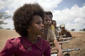 58. Internationale Filmfestspiele Berlin - Berlinale 2008Gescheitert am Echtheitsanspruch„Feuerherz“ (Luigi Falorni, D/Ö 2008)Luigi Falornis Film „Feuerherz“ basiert auf den Kindheitserinnerungen der eritreischen Sängerin Senait Mehari, in denen Mehari über ihr Schicksal als Kindersoldatin erzählt. Vom Buch wurden bisher über 450.000 Exemplare verkauft. Über die Authentizität der Erinnerungen wird bis heute vor Gericht gestritten. Autorin und Verlag wurden einen Tag vor der Erstaufführung des Films im Wettbewerb der Berlinale von einem Berliner Gericht zur Zahlung von 50.000 Euro Schmerzensgeld verurteilt, was allerdings noch nicht rechtskräftig ist. Weitere Schadensersatzklagen von ehemaligen Gefährtinnen Meharis stehen ins Haus. Vor diesem Hintergrund lavieren die deutsch-österreichische Produktion des Films und sein Regisseur. Zum einen verweist der Film eindeutig auf das Buch, zum anderen versucht man sich damit aus der Schusslinie zu bringen, dass die Handlung nun doch relativ frei vom Inhalt der literarischen Vorlage gestaltet ist.Die Geschichte spielt Anfang der 80er Jahre in Eritrea. Gedreht wurde der Film im nordkenianischen Wüstengebiet, in der eritreischen Landessprache Tigrinya. Die zehnjährige Awet wächst inmitten der Wirren des eritreischen Unabhängigkeitskrieges behütet und geborgen in einer christlichen Klosterschule auf. Nach einigen Jahren lässt ihr verschollen geglaubter Vater sie zu sich und ihren ihr bisher unbekannten Geschwistern bringen. Der Vater, ein Trunkenbold und Aufschneider, liefert Awet und ihre ältere Schwester binnen kurzem an eine der beiden rivalisierenden eritreischen Rebellenarmeen aus, die erbittert mehr gegeneinander als um die Unabhängigkeit von Äthiopien kämpfen. Awets Truppe befindet sich auf dem Rückzug. Es ist ein eher kleiner, zusammengewürfelter Haufen aus Frauen, Männern, Jugendlichen und Kindern. Letztere werden zunächst nur für Hilfsdienste eingesetzt und bekommen sogar eine Art Schulunterricht. Das Kriegscampleben wirkt anfangs auf die Kinder noch abenteuerlich, bis sie die ersten Leichen im Fluss entdecken. Später erleidet die Truppe immer mehr Verluste, auch der Anführer stirbt. An seine Stelle tritt eine fanatisierte Rebellin, die ohne Skrupel auch die jüngsten Kinder für ihre eher blindwütigen Zwecke einsetzt. Geschickt und naiv zugleich, doch letztlich vergeblich rebelliert die junge Awet, mit deren glaubhaft leidenschaftlicher Verkörperung Letekidan Micael zum Glücksfall für den Regisseur wird. Gegen Schluss fliehen die beiden Schwestern in die Wüste und werden märchenhaft von einer kleinen Karawane gerettet.![]() Glücksfall für den Film: Letekidan Micael als Awet (Foto: Berlinale) Obwohl es selbst auf der Berlinale-Pressekonferenz Proteste gab, bestreitet heute kaum jemand noch, dass im Eritrea-Krieg tatsächlich Kindersoldaten eingesetzt wurden, allerdings wohl nicht mit so brutalen Methoden wie z.B. in Uganda oder im Kongo. Der Film „Feuerherz“ versucht nun, Krieg mit den naiven Augen eines kämpfenden Kindes zu betrachten, was ihm von vielen Kritikern verübelt wird. Was weiß ein Kind schon über die wirklichen Gründe für einen Krieg (aber selbst viele erwachsene Soldaten schauen da oft kaum durch): Warum wird gekämpft, gegen wen, wer gibt die Befehle, worin bestehen die Differenzen der beiden sich bekämpfenden Befreiungsarmeen? Alle diese Fragen bleiben praktisch unbehandelt. Auch hält sich Drehbuchautor und Regisseur Falorni mit der Darstellung von Gewalt so weit wie möglich zurück. Klar werden die Kinder allein schon durch die tödlichen Umstände traumatisiert. Aber Misshandlungen der Kindersoldaten, Vergewaltigungen und anderes, was heute als allgemeinübliches, ultrarealistisches Reservoir von der Kritik erwartet wird, spart der Film aus. Auch das wird ihm von vielen Kritikern als verharmlosend angelastet, ebenso die fehlende Thematisierung von psychischer Zerrüttung und Verwahrlosung der Kinder. Dabei könnte man diese Zurückgenommenheit des Filmes auch verstehen und die Adressaten eher in einem Jugend- und Kinderpublikum suchen. Und allen Ernstes, das Sujet eines realistischen Rebellenkrieges mit Kindersoldaten ist in einem Spielfilm nur sehr schwer vorstellbar. Verharmlosend? Kindersoldaten beim Training an der Waffe (Foto: Berlinale) Letztendlich will der Film authentisch wirken, bezieht sich deshalb auf eine scheinbar „wahre“ Geschichte, distanziert sich dann doch wieder von dieser wegen der oben geschilderten juristischen Unwägbarkeiten und scheitert schließlich an seinem Echtheitsanspruch, weil er bei dieser Thematik mit „authentischen“ Kinderdarstellern nur schwerlich umzusetzen wäre. (Helmut Schulzeck)Feuerherz, Deutschland/Österreich 2008, 92 Min., 35 mm, Regie: Luigi Falorni, Buch: Luigi Falorni und Gabriele Kister frei nach „Feuerherz“ von Senait G. Mehari, Kamera: Judith Kaufmann, Schnitt: Anja Pohl, Darsteller: Letekidan Micael, Solomie Micael, Seble Tilahun, Daniel Seyo zurück zum Inhalt |