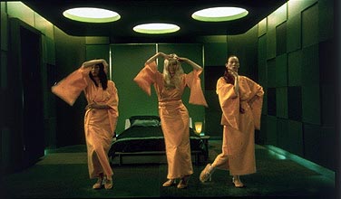 Emote your remote!Teknolust (Lynn Hershman Leeson, USA/D 2002)Rot, Grün und Blau sind die Farben, aus denen sich die virtuellen Welten des Screens zusammensetzen, Ruby, Marinne und Olive sind die geclonten Wiedergängerinnen der Genwissenschaftlerin Rosetta Stone. Lynn Hershman Leeson, Professorin für elektronische Kunst an der University of California - und Filmemacherin, erweckt alle vier in Gestalt von Tilda Swinton zum Leben, Digital Arts machens möglich. Zwischen den poppigen Popup-Menüs der auf der Leinwand allgegenwärtigen Computerscreens sind die drei Replikanten auf der Suche nach dem, was die Maschine Mensch ausmacht, und wirken dabei so pinocchiohaft sympathisch wie einst Android Data in Star Trek. Tilda-Trio beim Teknotanz - Tilda Swinton Eine Story über eine Menschwerdung des bloß technisch Konstruierten, die ihr Spannungsmoment auch aus dem Gen(re)-Pool der SciFi bezieht. Denn zum Überleben braucht das geclonte Trio regelmäßigen Nachschub von Y-Chromosomen, die Ruby auf ihren nächtlichen Ausflügen in die reale Welt per Samenraub von echten Männern beschafft. Nicht ohne dabei einen Virus zu hinterlassen, der Dr. Stones Laborkollegen Kopfschmerzen bereitet. Doch die clownesken Clone können den Virus auf Rosettas Festplatte beseitigen, die Samenlieferanten gesunden und Ruby findet am Happy End in Sandy (Jeremy Davies) sogar einen ganz realen Lover. |