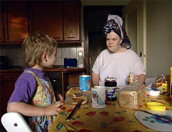 Kindliche MütterJetzt fahrn wir übern See. Mütter und Kinder auf dem Kieler Waldhof (D 2003, Antje Hubert)Ich fühle mich manchmal selber wie ein kleines Kind. Christina spricht es aus, das kleine ganz große Problem von so genannt geistig behinderten Müttern. Im Waldhof, einer Stätte für betreutes Wohnen behinderter Mütter und ihrer Kinder am Stadtrand von Kiel, haben Christina und ihre Tochter Zuflucht gefunden. Vorerst, denn das jugendamtliche Damoklesschwert, dass ihr das Kind weggenommen und in Pflege gegeben wird, hängt über ihr wie über zwei anderen Müttern, deren Alltag Antje Hubert in einem feinfühligen Porträt nachzeichnet. Michaela und ihre Tochter beim Frühstück Auch Andrea hat die Geburt ihres Kindes aus der Bahn geworfen. Die Pille hat sie zwar bekommen, aber nicht eingenommen, ihre Schwangerschaft erst im dritten Monat bemerkt. Aber das Kind, das als Frühchen zur Welt kam, ist ihr Blut und Fleisch und Herz und dafür wird sie kämpfen - wie eine Löwin ... Rebellisch bis verschlossen - Christina und ihre Tochter Rebellisch - vor allem gegen sich selbst - und witzig im Sinne von Gewitztheit gegenüber Herausforderungen, die selbst für normale Kraftreservoirs kaum zu bewältigen sind, gewinnen Frauen ein Profil, das sie als umso geeignetere Mütter erscheinen lässt. Dennoch vermeidet Antje Hubert eine Blickrichtung, die Behinderte als die eigentlich Wissenden zeigt. Die Defizite ihres Daseins werden nicht mit Sozialromantik zugekleistert, sondern als existenzielle Brüche herauspräpariert. Dies aus einer Perspektive, die Distanz wahrt und doch solidarisch mit den drei Müttern und ihren Kindern ist, insofern als sie Partei für sie und ihre ganz eigene Form des Mutter-Kind-Verhältnisses ergreift. Berührende Bilder eines innigen Mutter-Kind-Verhältnisses Quasi nebenbei - und gerade dieses Nebenbei macht den Film frei von jeglicher Gewolltheit - entstehen Bilder, die berühren. Etwa, wenn die Kamera Michaela einfängt, wie sie die Sesamstraße noch hingegebener als ihre Tochter anschaut. Oder wenn Christina ihrem Kind das Volkslied Jetzt fahrn wir übern See vorsingt, das dem Film den - allerdings etwas rätselhaften - Titel gab, und dabei so selbstvergessen ist, wie nur Kinder sein können. Vielleicht sind derart kindliche Mütter die besten Mütter ...? (Gudrun Lübker-Suhre) |