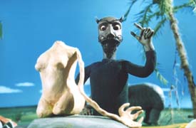 Nordische Filmtage Lübeck 2003Das Paradies ist eine Scheibe(Instinkt, Est. 2003, 10 Min., 35 mm, Rao Heidmets) Eva gebiert Adam, beide kämpfen miteinander um die Beseeltheit und den Göttern und Teufeln gerät ihre Schöpfung aus dem Lot. Das Paradies ist unfassbar, es sei denn als übersichtliche Scheibe. Denn der Instinkt lässt sich nicht handeln. Heidmets Film greift die aktuelle Diskussion um Klonen und dessen Schöpfungshybris auf, ein heiterer Trickfilm mit ernstem Thema, der die Kunst der Animation als ironischen Schöpfungsmythos zelebriert. |