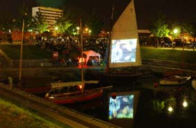 Filmpremiere im Kieler GermaniahafenNicht der Film Rätsel der Sandbank war neu, sondern der Ort der Vorstellung. Zum ersten Mal am Sonnabend dem 21. August organisierten der Museumshafen e.V. und die Kulturelle Filmförderung Schleswig-Holstein e.V. ein kostenloses Open-Air-Kino im Germaniahafen mit einem Gaffelsegel als Leinwand. Die Stimmung war gut bei den gut 100 Besuchern und sogar das Wetter spielte mit. Der Fernseh-Spionagethriller von 1987 spielt zum größten Teil auf einem Segelboot, das auf dem Nord-Ostsee-Kanal unterwegs ist. (Foto: Kieler Nachrichten) Aber nicht nur die Segler kamen auf ihre Kosten, auch zufällig Vorbeischlendernde blieben stehen und ließen sich von Projektionen von Booten auf Segel und den Spiegelungen im Wasser oder auch dem leicht trashigen Charakter des Films faszinieren. Nächstes Jahr im Sommer sind drei weitere Open-Air-Vorstellungen geplant. |
