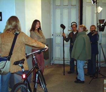 Super 8-Kurzfilm Wolkenjäger in ProduktionEin kleines Team Kieler Film-Enthusiasten verfilmt im September und Oktober eine kurze Geschichte um den Fahrradkurier Marc, der die Welt vorzugsweise durch das Objektiv seiner Schmalfilm-Kamera wahrnimmt. Nach einem Rendez-Vous mit der attraktiven Julia begeht er einen folgenschweren Fehler ... (Oben, v.l.:) Nils Aulike, Katrin Kröncke, Gerrit Seyler (Ton), Alex Eck (Regieassistenz), Julia Schwenzer (Licht/Video) Das No-Budget Projekt mit dem Arbeitstitel Wolkenjäger wird auf Super 8 mm an Original-Schauplätzen in Kiel gedreht. Vor der Kamera agieren u.a. Nils Aulike und Katrin Kröncke. Regie führt Daniel Krönke. |