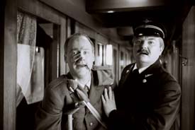46. Nordische Filmtage LübeckGroteske von Sein und ScheinIllusive Tracks / Skenbart (S 2003, Peter Dalle)Nichts ist notwendigerweise das, was es zu sein scheint, schrieb der deutsche Sprachphilosoph Ludwig Wittgenstein. Der schwedische Schriftsteller Gunnar Wern ist Wittgenstein-Fan und macht sich Ende 1945 mit dem Zug auf nach Berlin, um dort beim Wiederaufbau zu helfen. Doch nicht in Berlin, sondern schon im Zug erwarten ihn Katastrophen und deren Vor- und Abbilder. Da sind der welt- und liebesschmerzende Schwule, der Arzt und seine Geliebte, die den perfekten Tablettenmord an seiner Frau planen - und vergeigen, baltische Flüchtlinge auf dem Weg vom Nirgendwo ins Nirgendwo, ein pedantischer Schaffner und ein verwundeter Soldat, der bei jeder slapstickhaft ungeschickten Begegnung mit Gunnar noch eine Versehrung hinzubekommt. Am Sinn des Lebens Versehrte sind sie alle samt, die in der Stunde Null nach Berlin reisen. Und so kommt auch fast keiner heil an. In einer Groteske zwischen Chaplin-Slapstick, Film Noir und Remineszenz an Jacques Tourneurs Berlin Express lässt Peter Dalle die Puppen tanzen an den verwirrten und sich immer mehr verwirrenden Fäden des Daseins. Wo das Sein so brüchig und zwischen den Welten ist, regiert der Schein, manchmal nur schön, meist aber schrecklich. Dalle lässt keine abstruse Wendung aus, um die so oder so Versehrten in noch eine weitere der selbst aufgestellten Fallen tappen zu lassen. Der brachiale Witz, die Anleihen bei Splatter- und Horror-Movie wirken dabei bisweilen allzu pubertär verspielt. Aber sie zeigen in allem Komödiantischen doch, dass der Sinn des Daseins, wenn nicht nur Schein, dann doch Irrsinn ist. |