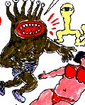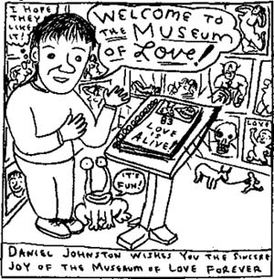 55. Internationale Filmfestspiele Berlin - Berlinale 2005Wahnsinn und GenieThe Devil and Daniel Johnston (Jeff Feuerzeig, USA 2004)Vier Jahre Arbeit hat Jeff Feuerzeig in seine Dokumentation über die Songwriter-Legende Daniel Johnston investiert. Einen Großteil dieser Zeit verbrachte er damit, die unglaubliche Menge an originalem Archivmaterial zu sichten und zu katalogisieren. Daniel Johnstons Leben ist wahrscheinlich das best-doukumentierte überhaupt, vermutet der Regisseur nach der Vorstellung des Films auf der Berlinale, John Lennons eingeschlossen. Aus tausenden von Audio-Tapes, Super-8-Filmen und Zeichnungen von Daniel Johnston selbst sowie Fotos, Videos und Interviews mit Johnstons Weggefährten montiert Feuerzeig ein faszinierendes Kaleidoskop eines Getriebenen, eines genialischen, aber manisch-depressiven Künstlers, der Zeit seines Lebens ein Underdog blieb. Daniel Johnston (Szenenfoto: Berlinale) Feuerzeig erzählt die Lebensgeschichte des heutigen Mittvierzigers chronologisch, beginnend mit dem Aufwachsen im konservativ-fundamentalistisch geprägten West Virginia bei den religiösen Eltern. I believe in God and I believe in the Devil. There certainly is a Devil and he knows my name, zitiert Feuerzeig Daniel Johnston. Die immerwährende Angst vor dem Bösen ist eine Triebfeder im Schaffen Johnstons. Bald entdeckt Johnston seine Muse, eine Lichtgestalt vielleicht als Gegenpol zum Bösen in der Johnston-Welt. In zahllosen Super-8-Filmen und auf Audio-Tape hält er seine Mitschülerin Lory fest. Alle seine traurigen Liebeslieder drehen sich um Lory und mithin um eine Liebe, die sich nie erfüllen wird. Johnstons Bilder (hier Excuse Me) sind in Galerien in den USA und Europa ausgestellt (Abbildung mit freundlicher Genehmigung von Stress Records, www.museumoflove.com) Johnston nimmt seine Songs auf kleinen tragbaren Kassetten-Rekordern auf, zeichnet die Cover selbst und verschenkt sie. Da er keine Möglichkeit hat, die Tapes zu kopieren, spielt er seine Songs für jede Kassette neu ein, er produziert nur Unikate und Hunderte von Versionen seiner Songs. Fortwährend dokumentiert Johnston aber auch für ihn bedeutende Alltagssituationen, beispielsweise einen Streit mit seiner Mutter: auf dem Tape ist zu hören, wie Mrs. Johnston angesichts Daniels manischer Aktivitäten ihrem Sohn hilflos vorwirft, er führe kein gottgefälliges Leben. Zu spät werden die Eltern erkennen, wie krank ihr Sohn tatsächlich ist. Daniel Johnston Anfang der 90er Jahre kurz vor seinem Nervenzusammenbruch (Abbildung mit freundlicher Genehmigung von Stress Records, www.museumoflove.com) Heute lebt Johnston wieder bei seinen Eltern, die sich um ihn kümmern. Ihre größte Sorge ist, was aus ihm wird, wenn sie einmal nicht für ihn da sind. Er spielt mit einer lokalen Garagenband, gibt seltene, aber umjubelte Konzerte und stellt seine Zeichnungen aus. Das Museum of Love vertreibt Johnston Originale (Abbildung mit freundlicher Genehmigung von Stress Records, www.museumoflove.com) |