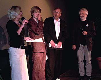 9. Filmfest Schleswig-Holstein AugenweideBlicke auf die andere SeiteDas 9. Filmfest Schleswig-Holstein Augenweide bot einen fruchtbaren Boden für schleswig-holsteinische Filme mit ungewöhnlichen Perspektiven.And the Winner is ... Die andere Seite. Das galt am Ende des dreitägigen 9. Filmfests Schleswig-Holstein Augenweide, das vom 27. bis 29. Mai von der Kulturellen Filmförderung Schleswig-Holstein und dem Kieler Kommunalen Kino in der Kieler Pumpe veranstaltet wurde, nicht nur für den mit dem Hauptpreis (einem Adobe Creative Suite-Softwarepaket von Sponsor ComLine) ausgezeichneten Kurzfilm von Christian Mertens. Mit Blicken auf die andere Seite in ungewöhnlichen Perspektiven, kameratechnisch wie erzählerisch, beschäftigten sich viele der 12 Dokumentar- und 15 (Kurz-) Spielfilme, die die 9. Augenweide als Querschnitt durch das aktuelle Filmschaffen in Schleswig-Holstein sowie in den diesjährigen Partnerländern Finnland (Region Ostrobothnia) und Japan zeigte. Interessiertes Publikum auf der Augenweide (Fotos: Lorenz Müller) Die Jury, bestehend aus dem Filmemacher Bernd Fiedler, Cerstin Gerecht, Leiterin des Kulturamts der Landeshauptstadt Kiel, und Karsten Wiesel, Programmmacher bei den Flensburger Kurzfilmtagen, lobte den Preisträgerfilm dafür, dass er keine fertige Lösung anbietet, Neugier und Fantasie der Zuschauer anregt und mit einem entschlossenen Vielleicht endet. Auch die lobende Erwähnung für Britt Dunses Kurzfilm Norden gilt der technischen Experimentierfreude und musikalischen Komposition und damit einem Filmgenre, das es sonst auf Festivals, geschweige im Kino nicht leicht hat. Die Jury (v.l.: Cerstin Gerecht, Karsten Wiesel, Bernd Fiedler) und Bernd-Günther Nahm, Geschäftsführer der Kulturellen Filmförderung S.-H. bei der Preisvergabe Neben Mertens Die andere Seite, einem facettenreich mit Perspektivwechseln, Vor- und Rückblenden spielenden Kurzfilm über eine Bankräuberin, die vielleicht nur der entschlossenen Fantasie des erzählenden Protagonisten entsprungen ist, unterstrichen bei der Augenweide gleich mehrere Premieren, dass sich schleswig-holsteinische Filmemacher nicht scheuen, ungewöhnliche Blickrichtungen zu etablieren und damit die Weiterentwicklung der traditionellen Erzählweise des Spielfilms (Jury-Begründung zu Die andere Seite) voranzutreiben. Hauptpreisträger Christian Mertens (Mitte) und sein Team Anne Cathrin Buhtz als Bankräuberin in Die andere Seite Michael Carstens Kurzfilm Wie man unsichtbar wird zeigt die einsamen Innenwelten eines Mannes, der sich selbst Liebesbotschaften auf Postkarten schickt, mit surrealen Kameraperspektiven und -fahrten. Michael Carstens (Mitte) und sein Team Blindschatten von Gerald Grote und Claus Oppermann synästhetisiert den zärtlichen Tastsinn durch schwebende Bilder hinter der Leinwand. Kai Zimmers Experimentalfilm Blaue Blumen spürt dem romantischen Gefühl nach, in Novalis Roman Heinrich von Ofterdingen und den dazu passenden Naturbildsequenzen ebenso wie in den Musikkulissen von Hollywoodfilmen. Puppethotel von Meike Fehre und Sabine Dully animiert im andersseitigen Blick des aufwändigen Stopptricks die immer gültige Geschichte von einem Mädchen, hier eine niedliche Kakerlake, zum Jüngling, hier ein arbeitsloser Hotelportier. Lars Jessen (rechts) mit dem Vorbild für die Figur Rakete aus Am Tag als Bobby Ewing starb Blicke in die Grauzonen der Geschichte(n) wagten ebenso die bei Augenweide präsentierten Dokumentarfilme. Ob Kiel im Bombenkrieg mit von Kay Gerdes neu aufgefundenem Archivmaterial, Rasmus Gerlachs Die Brigade (Sonderpreis gestiftet von Bernd Fiedler) über Revolutionstouristen beim Ernteeinsatz auf Cuba, Filetstück von Miriam Rupp und Rolf Schwarz über den Kampf um das Lübecker Kulturzentrum Alternative oder die poetisch zwischentönige Wende-Studie Zwischen den Grenzen von Laura von Bierbrauer und Luise Donschen - Geschichte wird als Erlebtes gezeigt. Instruktive Blicke auf andere Seiten, für die die Kulturelle Filmförderung und das Filmfest Augenweide, so Bernd-Günther Nahm, Geschäftsführer der Kulturellen Filmförderung Schleswig-Holstein, erneut einen gut bestellten Boden bereiteten, auf dem die entsprechenden Früchte gedeihen können. Dass der gleich nach dem Ende eines auch beim Publikum erfolgreichen Filmfests weiter anders und nicht artig beackert werden wird, dessen darf man gewiss sein, denn vom 19. bis 21. Mai 2006 feiert die Augenweide ihr 10. Jubiläum. |