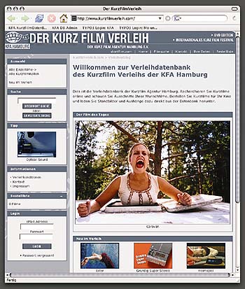 Die Datenbank der KurzFilmAgentur bietet seit Juni unter www.kurzfilmverleih.com allen Kurzfilminteressierten einen direkten Zugang zu Daten, Bildern und Filmausschnitten aus den über 300 Kurzfilmen des Verleihs der KFA. Kinobetreibern in Deutschland, Österreich und der Schweiz wird zusätzlich ein besonderer Bestellservice für ein optimal auf ihr Kino abgestimmtes Kurzfilmprogramm geboten.