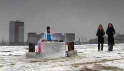 FilmTrain 2004-2006Ungeträumte Träume„In Limbo“ (Friederike Rückert, D 2006)Ein Pferd trabt an den Panoramascheiben des Kieler Cafés Viva vorbei, dreht dressierte Runden auf dem Dach eines Hochhauses oder schimmelreitet am Strand, an dessen nebelverhangener Steilküste drei Frauen stehen wie in einem Gemälde von Caspar David Friedrich. Solche surreal-symbolistischen Szenen sind es wohl, die Friederike Rückert dazu veranlasst haben, ihre Dokumentation über drei Kieler Frauen, die ihren Lebensunterhalt als Kellnerinnen verdienen, als „Doku-Fiktion“ zu bezeichnen. Vielleicht aber ist es auch die fortgesetzte Gegenüberstellung von ungelebten Lebensträumen und den Realitäten des Tresenwesens, die es nahelegen von Fiktion zu sprechen ja zu fragen, ob nicht jede Dokumentation letztlich auch eine Fiktion ist, indem sie Pläne vom Dargestellten entwirft wie die drei Protagonistinnen von ihren ungeträumten Lebensträumen. Melanie, Marianka und Jette stehen kurz vor ihrem 30. Geburtstag. Eine „magische“ Zahl, noch nicht die Midlife-Crisis, aber Fragen stellen sich dennoch drängend: Was wollte ich, was habe ich daraus gemacht, was werde ich werden? Alle drei Frauen arbeiten seit über zehn Jahren als Kellnerinnen in Bars und Cafés nicht alle im Viva, wie der Film suggeriert, nein: leicht fiktional zusammenfasst, denn ein Tresen gleicht dann doch dem anderen. Begonnen hat das bei allen mal als Studentenjob, aber dann sind sie dabei geblieben. Und haben darüber ihre Lebensträume ausgeträumt? So speziell das Setting ist, so allgemeingültig porträtiert „In Limbo“ doch eine ganze Generation der heute Thirty-Somethings. Für den Aufbruch von 1968 mit all seinen ideologischen Lebensrettungsgesellschaften sind sie zu jung, ebenso für die berühmte „Generation X“ der heute 40-jährigen. Aber auch ihre Generation der Mitte der 70er Jahre Geborenen leidet unter einer gewissen Perspektivlosigkeit zwischen abgebrochenen Anfängen und angefangenen Ausbrüchen. „Ich hab' immer gedacht, dass ich mit 24, 25 schon total alt bin und vielleicht schon verheiratet bin und das kam mir immer so total erwachsen vor. Jetzt bin ich schon wesentlich älter und jetzt setzt das so langsam an, dass ich denke, ich krieg’ mal so’n bisschen erwachsene Züge aber ich fühle mich eigentlich immer noch wie ein Mädchen und das finde ich auch total gut so“, erzählt Melanie der „Talking Heads“-Kamera. Der Aufbruch war gestern, als sie als junge Studentin mit wenig Lust zu einem auch eher zufällig gewählten Studium sich immer häufiger ins Nachtleben stürzte, um das lag halt nahe irgendwann mal die Tresenseiten zu wechseln und sozusagen das „Hobby“ zum „Beruf“ zu machen. Freilich ohne Berufung, denn eigentlich wollte Melanie Tänzerin werden. „Du musst was Ordentliches machen“, sagte man und sie sich Marianka. „Aber mir fiel nichts Ordentliches ein.“ Und was ist schon „ordentlich“? Immerhin: als Kellnerin hat frau einen erstaunlich geordneten Tagesablauf zwischen Kaffeeautomat und nächtlicher Kassenabrechnung. DJane würde sich Marianka als Traumjob vorstellen und Rückert bringt sie filmisch, träumerisch, fiktional vom Tresen ans Pult, von Tasse und Teller an die Turntables. Und surreal, mitten im Winter, auf auch so eine abgebrochene Brache, das Niemandsland an der Kieler Hörn südlich der Bauleiche des Schmidt-Hochhauses. Wenn das kein Symbol ist oder doch ein fein inszenierter Traum? Und Jette, die sich schon durch manche Kieler Cafés gejobbt hat, während sie doch eigentlich mal Richtung Logopädie oder Radio Machen gezielt hatte ... Doch jetzt sind da im Viva die Stammgäste, die oft nerven, weil sie jeden Tag dasselbe bestellen und auch noch über ihre ebenfalls unvollendeten Lebensträume reden wollen. Geschickt mixt Friederike Rückert die Ebenen von Realität und Traum, der nur im Film zu einem solchen werden kann, in der Realität wohl nicht mehr, und ihr gelingt dabei mehr als eine Dokumentation über drei Frauen mit ungewissen Perspektiven. Über die Inszenierung von Träumen im Film hat Rückert jüngst als Filmwissenschaftlerin gearbeitet, hier liefert sie dazu sozusagen das realisierte Gesellinnenstück. Die Pferde traben durch die Szenen wie andalusische Hunde auf Filmfutter-, also Zitat-, also Traumsuche. Und wenn wir aufwachen? Dann erst dürfen wir wie die drei Damen vom Tresen weiter träumen, was keinesfalls schon ausgeträumt ist der hier angeträumte Traum von einer neuen Art des filmischen Dokumentierens. (jm) In Limbo, D 2006, DV (Beta SP), 28 Min. Regie: Friederike Rückert, Regieassistenz: Christian Straub, Kamera: Simon Guy Fässler, Alexa Höber, Kamerabühne: Malte Kneib, Simon Kühl, Kamerassistenz: Ulrich Selle, Schnitt: Friederike Rückert, Torsten Pinne, Aufnahmeleitung: Jan-Gerrit Seyler, Licht: Jörg Berger, Script: Nadine Lindenau, Ton: Torsten Pinne, Toni Labrador, Mischung: earworx, Produktionsassistenz: Rebecca Freyer, Nils Morich, Maske: Deele Andrée, Storyboard: Jan Puck, Fotografin: Susanne Ludwig, Catering: Janna Rönnau, Kooperativa, Fahrer: Jan Puck, Tierbetreuung: Fee Kleine, Jan Puck, Angeline Schube, Titeldesign: Marius Gugg, Gestaltung: Rebecca Freyer, Musik: Rio Bravo, Christian Morgenstern, Torsten Pinne, Stefan Senz, Produktion: FilmTrain, Friederike Rückert. Mit: Melanie Mendrys, Marianka Benesch, Jette Schätzel. Trailer: http://rzglab15.rz.uni-kiel.de/geotv/filmtrain/inlimbo.wmv |