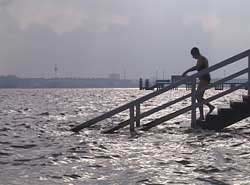 FilmTrain 2004-2006Frei-Schwimmer„Winterschwimmer / Cool Strokes in the Baltic Sea“ (Ulrich Selle, D 2006)Spätsommers letzte Tage, Herbstes erste Kühle. Das Wasser der Kieler Förde am eigentlich schon geschlossenen Seebad Düsternbrook ist kalt, kältereizend für die unermüdlichen Bader, denen die Seebad-Betreiber einen extra Schlüssel geben, damit sie weiter den Förde-Fluten frönen können. Etwas mehr als eine Handvoll sind es, die auch im Winter das eiskalte Nass nicht meiden, die daraus etwas Transzendentes, Befreiendes beziehen ... die Ulrich Selle in seiner Dokumentation „Winterschwimmer“ beim Schwimmen beobachtet und danach darüber vor der Kamera hat sinnieren lassen. Manfred Holzhüter zum Beispiel, Ex-Seemann, der kommt jeden Tag gleich dreimal aus Kiel-Gaarden geradelt um selbst bei Eisgang ins Wasser zu springen. Ob das gesund ist, bei knapp über Null Grad Wassertemperatur zu baden, darüber zerbricht sich die medizinische Wissenschaft noch die heißen Köpfe, weiß einer von Holzhüters Winterschwimmer-Kollegen. Fakt ist, ihm tut es gut, Wissenschaft hin oder her. Nicht nur ihm. Die Winterschwimmer bilden eine kleine verschworene Gemeinschaft von „Extremsportlern“, die so extrem nicht sind. Ganz normale Menschen, die eine Leidenschaft entdeckt haben, die aus Leiden Lebensfreude schafft. Da ist die Schwimmerin, die das Bad am kalten Morgen als Erleuchtung empfindet. Und das alte vertraute Ehepaar, das den Schwimmakt mit dem Kamillentee danach zum Ritual gemacht hat. Geradezu rührend zuzuschauen, wie der nicht badende Mann seiner Frau jeden Morgen den Tee danach kredenzt, wenn sie beide dem Aufgehen der Sonne zuschauen. Ein Paar, das in sich und miteinander ruht in einer Extremsituation für den schwimmenden Körper, vorallem aber seine Seele. Man kann sich ungefähr vorstellen, was dabei heraus gekommen wäre, wenn RTL, SAT.1 oder all die anderen Doku-Soaper dieses Thema für eine ihrer „Realitys“ entdeckt hätten: etwas Reißerisch-Abstruses, die Ausstellung des Abseitigen zum schadenfrohen Grusel eines sensationsgierig abgestumpften TV-Publikums. Ulrich Selle geht den anderen Weg. Er sucht nicht nach Sensation, selbst wenn die nackten Füße der Winterschwimmer sich in Großaufnahme über Eiskrusten ins eiskalte Nass tasten. Es ist das leise Erzählen, das Unspektakuläre im Spektakulären, das diesem poetischen Film eine Nahrung gibt, die aus den Gefühlen seiner Protagonisten gespeist ist. Und so „esoterisch“ verbrämt die zuweilen anmuten mögen, so authentisch lebendig sind doch die Stimmen derer, die sich diesem eiswässrigen Extrem aussetzen. Die Nacktheit, mit der die Winterschwimmer in die Wellen tauchen, ist dabei ein Symbol für eine zutiefst ursprüngliche menschliche Lebendigkeit. Das Leben blüht und knospet hier, mitten im Winter, zwischen Eis so warm, so frühlingshaft. Ein Film der sogar mit Unterwasserkamera seinen Protagonisten durch die Jahreszeiten in eine Sphäre folgt, die bei allem pittoresk Abseitigen doch etwas zutiefst Menschliches entdeckt: den unbändigen Wunsch sich frei zu schwimmen. (jm) Winterschwimmer / Cool Strokes in the Baltic Sea, D 2006, Betacam SP, 29 Min. Regie/Kamera: Ulrich Selle, Ton: Elisabeth Saggau, Moses Merkle, Unterwasserteam: Daniel Krönke, Ulrich Selle, Schnitt: Ulrich Selle, Schnittberatung: Margot Neubert-Maric, Claudia Willke, Produktionsberatung: Bernd-Günther Nahm, Trailergestaltung: Lorenz Müller, Ulrich Selle (Trailer unter http://rzglab15.rz.uni-kiel.de/geotv/filmtrain/winter.wmv), Tonmischung: Nikolai Kasüske. Kiel-Premiere am 22. April, 18.30 Uhr im Kieler KoKi, u.a. mit Protagonisten und dem Tangoensemble „Tangoneon“. |