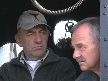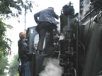 „Kein Kinderspiel“ Eindrücke des Produktionsleiters vom Dreh„Kein Kinderspiel“ schon der Titel zu Bernd Fiedlers erstem Drehbank-Film lädt zum Wortspiel ein. Zwar waren die Dreharbeiten beileibe nicht von Pappe. Aber wie sagt Bernd bisweilen so schön: „Was zählt, ist das Resultat“. Was wir hier zum ersten Mal unter ständigem Ansporn und Instruktion von Produzent, Drehbuchautor, Regisseur und Kameramann Bernd Fiedler auf die Beine gestellt haben, ist die professionelle Produktion eines ca. 90-minütigen Spielfilms in zwei Proben- und nur zehn Drehtagen. Gedreht mit 9 Darstellern und einer Crew hinter der Kamera von nur 10 Filmschaffenden. Über 50 Prozent Außendrehs im vorher unwägbaren Herbstwetter der holsteinischen Probstei, Dreharbeiten auf einem kleinen Ruderboot mitten auf der Ostsee oder auf dem engen Führerstand einer fahrenden Dampflokomotive (eine abgewandelte, PS-stärkere T3, eine ehemalige Rangierlok der Deutschen Reichsbahn) aus dem Jahre 1920. Im Nachhinein staunen wohl selbst alle Beteiligten über das Gelingen einer solch schwierigen Produktion. Wir waren alle höchstmotiviert, anders „geht“ so eine Produktion nach dem Drehbank-Konzept auch gar nicht. Höhepunkt war, wohl nicht nur für mich, der Dreh auf der Eisenbahn am 3. Drehtag. Das Wetter an diesem sonnigen, späten Septembertag spielte mit und schenkte uns mit seinem milden gelben Licht die besten Witterungsumstände. Schon am Abend vorher hatten unsere beiden Helfer Martin Heimann (Lokführer) und Christian Bünger (Heizer) vom Verein der „Museumseisenbahn Schönberg Schönberger Strand“ die alte Dampflok angeheizt und das Feuer anschließend zur Nacht „schlafen gelegt“. Ab 7 Uhr morgens waren dann unsere beiden Darsteller Siegfried Jacobs (aus Kiel) und Willi Schlüter (aus Hannover) auf der fahrenden Lok eingewiesen worden. (Unsere Aufnahmeleiterin Nadine Lindenau durfte zu ihrer großen Freude auf der Lok mitfahren.) Schließlich sollten sie dann ab 9 Uhr zwei Hobby-Eisenbahner spielen und die Lok fachgerecht fahren. Bernd Fiedler (l.) hat auch auf kleinem Raum alles im Bild, Frank Fiedler angelt der Ton vom Lokdach aus (Foto: hsch) Im Film Eisenbahnfans: Willi Schlüter (l.) und Siegfried Jacobs auf dem Führerstand der T3 (Foto: hsch) Frank Fiedlers Dampfrossbesteigung (Foto: Oliver Boczek) Der eigentliche Lokfahrer, Martin, stand während der Dreharbeiten auf dem Trittbrett außen auf dem fahrenden Dampfross. Für ihn war auf dem engen Führerstrand kein Platz, musste doch Bernd mit seiner wendigen Mini-DV-Kamera auf seinem selbsterfundenen Steady-Grip sich auch noch auf dem Führerstand aufhalten. Sein Bruder Frank Fiedler, unser Tonmann und späterer Cutter, angelte verblüffend gleichmütig, aber dennoch voller Konzentration den O-Ton vom Dach der fahrenden Lokomotive aus durch eine Luke oberhalb der agierenden Personen. Für den unbedarften aber fachkundigen Außenstehenden sicherlich der reinste Wahnsinn, aber für unser restliches Team, das auf einem vorgespannten offenen Güterwagen dieses Drehkunststück mitverfolgen durfte, schon nach kurzer Zeit die natürlichste Drehweise der Welt. Jetzt befindet sich das Material im Schnitt auf „Final Cut Pro“ in der Filmwerkstatt der Kulturellen Filmförderung Schleswig-Holstein in Kiel. Das Resultat, das, wie gesagt, zählt, wird aller Voraussicht nach in ca. vier Wochen vorliegen. Und nicht nur der Produktionsleiter Schulzeck wartet gespannt und voller Optimismus. (Helmut Schulzeck) |