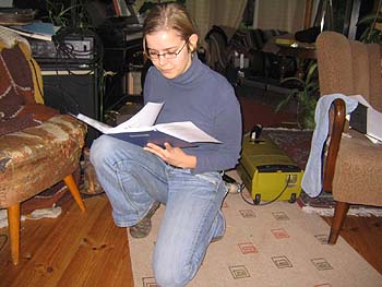 Von Radiergummies, Kettenraucherinnen und KomponistenMaria Reinhardt drehte „Der Bleistift-Weg-Mach“Kaum hatte Maria Reinhardt für „Frau Kubinsky“ als besten Kurzfilm im Filmforum Schleswig-Holstein den ComLine-Preis auf den 48. Nordischen Filmtagen Lübeck erhalten, war aus ihrem Munde wieder vermehrt „Bitte“ und „Danke“ zu vernehmen. Nicht, dass sich die Physikstudentin ansonsten durch Unhöflichkeit auszeichnet, vielmehr gab die Regisseurin mit diesen Worten ihrem Kameramann Torben Sachert und dem übrigen 20-köpfigen Filmteam bei den Dreharbeiten das Zeichen, wann die Kamera ein- bzw. auszuschalten war. Seit März diesen Jahres steckte die 24-jährige in Planungen für ihr neuestes Filmprojekt mit dem Arbeitstitel „Der Bleistift-Weg-Mach“, das von der LAG Jugend und Film gefördert wurde. Zusammen mit ihrem Vater Henning Schöttke konzipierte sie das Drehbuch, das vom 11. bis 17. November in Kiel und Umgebung auf dem qualitativ hochwertigen Filmformat HD realisiert wurde. In diesem Kurzfilm geht es um den introvertierten Komponisten Sebastian, der glaubt, dass seine Frau Katrin sein Radiergummi aufgesaugt hat. Wurde gerade bei den Nordischen Filmtagen Lübeck mit dem Comline-Preis für den Kurzfilm „Frau Kubinsky“ ausgezeichnet: Maria Reinhardt (24) bei den Dreharbeiten zu ihrem neusten Filmprojekt: „Der Bleistift-Weg-Mach“ (Fotos: Yvonne Neubauer) Der freiberufliche Schauspieler Nickel Bösenberg aus Köln (früher Kiel), der die Hauptrolle spielt, erklärt: „Sebastian will zwar den Zuhörer in seine Welt mitnehmen, verstrickt sich aber allein schon bei dem Versuch zu zeigen, wie kompliziert Komponieren ist. Die Figur ist in einem ständigen Arbeitsprozess.“ Die Hamburger Schauspielerin Jessica Zang, die die Ehefrau und Mutter verkörpert ergänzte: „Und ich versuche dann, das Chaos meines Mannes einzuschränken.“ Im Film mutiert sie zur Dauerraucherin: Von der Wasserpfeife über Zigaretten bis zu Pfeife wird alles gepafft. „Dabei bin ich doch Nichtraucherin“, so die 30-Jährige amüsiert. Nickel Bösenberg (35) verkörpert die Rolle des introventierten Komponisten Sebastian, während Jessica Zang (30) als seine Ehefrau versucht, sein Chaos einzudämmen. „Neu bei der Umsetzung des Films ist, dass mein Kameramann Torben Sachert und ich dieses Mal bewusst keine komplizierten Kamerafahrten eingesetzt haben. Wir wollten der Geschichte damit mehr Raum geben. Die Auflösung der Szene war nicht vorher festgelegt, sondern hat sich oftmals erst beim Drehen entschieden“, sagt Maria Reinhardt. Bei der Besetzung ihrer Filmcrew setzte sie allerdings auf ihr alt- bewährtes Konzept, so dass viele Mitglieder inzwischen zu ihrem festen Filmstab gehören. Kameramann Torben Sachert ist mittlerweile festes Mitglied der Filmcrew von Maria Reinhardt. Auch beim Dreh zu „Der Bleistift-Weg-Mach“ war er wieder bei der Umsetzung des Drehbuchs beteiligt. „Der Bleistift-Weg-Mach“ spielt mit verschiedenen Filmelementen. Der Film wechselt dabei die Humorebenen, die sich vom Wortwitz und Slapstick Loriotscher Prägung zum Sarkasmus à la Monty Python steigern. Als klar wird, dass der verlorene Radiergummi wichtiger ist als die Nachricht von einer Hungerkatastrophe, an der allenfalls die politisch korrekte Formulierung interessiert, entwickelt sich der Film zu einem sarkastischen Kommentar zur Mediengesellschaft. (Yvonne Neubauer) |