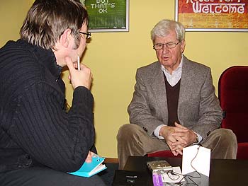 Das heißt, Sie verleihen da Woody ihre ureigene Stimme? Ja. Die Zuschauer sind einfach an meine Stimme gewöhnt, da muss ich es so weitermachen. Was soll ich mich da verstellen? Wie ist die Zusammenarbeit mit der jeweiligen Dialogpartnerin, z.B. Traudel Haas? In den letzten Jahren ist man gar nicht mehr zusammen im Studio. Ich habe meine Rollen immer alleine gesprochen. Besser war es früher, wo wir zusammen im Studio waren, da kann ich ihre Töne abnehmen. Wenn man nur seinen Satz sagt und ihren nicht hört, muss man natürlich ihren Satz wie sie den sagt immer im Kopf haben. Wie wichtig ist eine Schauspielausbildung für das Synchronisieren? Die ist sehr wichtig. Die Substanz eines Schauspielers, die er am Theater erfährt, bringt er mit ins Synchronstudio. Jemand, der bloß Sprecher ist, kann die Zwischentöne nicht bringen. Das hat sich heute im Synchrongeschäft verändert, da glaubt jeder, dass er es kann. Machen Sie lieber Hörspiel oder Synchronsprechen? Ganz klar Hörspiel. Da hat man freie Hand, da muss man nicht das machen, was der da oben auf der Leinwand macht. Man muss nicht auf Synchronität achten. Ich kann frei sprechen, ich kann die Rollen frei gestalten. Wenn ich einen schlechten Schauspieler synchronisisere, werde ich immer schlecht sein. Hörspiel ist gegenüber Synchronsprechen eine echte Erholung. Deshalb habe ich das immer ganz gern gemacht. Synchronisieren ist für mich erfunden worden, denn ich bin jemand, der gern im Dunkeln arbeitet, der die Öffentlichkeit scheut stellen Sie sich mal vor, ein Schauspieler, der die Öffentlichkeit scheut, der nicht im Mittelpunkt stehen will, der kein Selbstdarsteller ist, der kann doch keine Karriere machen. Ich habe mich ins Dunkle verzogen und bin daraus auch nicht wieder aufgetaucht. (Das Interview führten: jm, dakro, Fotos: dakro) Teile des Interviews als MP3, mono (in begrenzter Tonqualität) finden sich hier. |