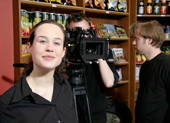 Satirischer Seitenhieb auf den Filmbetrieb„Inselaffen eine Kinomär“ (D 2008, Christoph Dobbitsch)Es ist nicht unbedingt eine gute Idee, wenn Autoren übers Schreiben schreiben, und genauso wenig ist es eine gute Idee, wenn Filmemacher Filme übers (Nicht-) Filmen machen meint man gemeinhin. Doch Christoph Dobbitsch ist mit seinen „Inselaffen eine Kinomär“ ein vergnüglicher Gegenbeweis gelungen, selbst wenn dieser autobiografische Züge trägt. Sandra (Luzie Buck) kommt von einer Insel im schleswig-holsteinischen Wattenmeer, weit entfernt von den ohnehin kärglich gefüllten Töpfen der Filmförderer im Lande hier jedenfalls kommt gar nichts mehr an. Aber auch weit entfernt von deren Interesse an ihrem Projekt, einen experimentellen Film über das Filmen, untermalt von einem Bowie-Song, zu machen. Im Land zwischen den Meeren empfehlen schmierige Produzenten, einen maritimen Dokumentarfilm über Mollusken zu drehen, sowas komme an, werde zumindest gefördert. Oder dem Regisseur Schmidtbauer (grandios besetzt: Herbert Feuerstein) zu folgen, der auf die Frage Sandras, ob er nicht immer dasselbe drehe, mit einem trotzig einsilbigen „Ja“ antwortet. Oder wie die Produzenten meinen: „Film braucht nicht revolutionär zu sein, nur nicht devolutionär.“ Kurzum: Sandra kriegt kein Bein an Deck zwischen überforderten Förderern und einem Establishment, das sich die Mär des Bewährten auf die Filmspulen geschrieben hat.