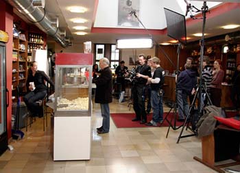 Nach „BedHead“ und „Fliegenfänger“, zwei eher traumhaft surrealen Kurzfilmen, betritt Christoph Dobbitsch hier das engere Terrain der Satire und entdeckt dort doch kafkaeske Szenen einer Traumfabrik, die an der realistischen Verwaltung ihrer Träume scheitert. Insofern eine schöne Parabel auf das „Hollywood“ zwischen Nord- und Ostsee. Unbedingt sehenswert als Zwischenruf eines Filmemachers, dessen bei der Filmförderung abgelehntes größeres Projekt der Auslöser für diese „Retourkutsche“ gewesen sein mag, der aber zeigt, wie man im abseitigen Kleinen große filmische Schritte voran machen kann. (jm, Fotos: Andrea Segelbach) „Inselaffen“ ist im Juli und August in diversen Kieler Kinos zu sehen. Die Vorstellungen werden von einem ständig wechselnden, ausgewählten Kurzfilmvorprogramm aus Kieler Kameras begleitet: