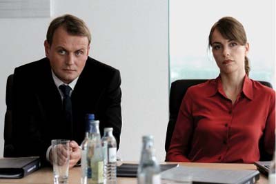 57. Internationale Filmfestspiele Berlin - Berlinale 2007Traumhaft„Yella“ (Christian Petzold, D 2007)Eine gescheiterte Ehe, keine Aussicht auf Arbeit: Yella (Nina Hoss) will aus der kleinstädtischen Enge in der ostdeutschen Provinz ausbrechen. Ein Jobangebot aus der Messehauptstadt Hannover scheint neue Horizonte zu eröffnen. Doch der Traum von einem neuen Leben ist schon vorbei, bevor er angefangen hat, der neue Arbeitgeber längst insolvent. In dieser Situation scheint es nicht verwunderlich, dass Yella das Angebot von Philipp (Devid Striesow) annimmt, für ein paar Tage als seine Assistentin zu arbeiten. Im Auftrag einer Private-Equity-Firma bietet Philipp geldknappen Industrieunternehmen Finanzierungen an. Yella kennt sich mit Bilanzen aus, schnell findet sie sich bei den knallharten Verhandlungen in der Welt des Venture Capitals zurecht. Sie kommt Philipps Unterschlagungen auf die Schliche, der unsentimentale Geschäftsmann entpuppt sich als Finanz-Hasardeur mit Traum vom eigenen, großen Investment. Aus den beiden werden Komplizen und Geliebte. Für den Traum von einer gemeinsamen Zukunft blufft Yella ohne Philipps Wissen einen Geschäftsführer über das Limit, es kommt zur Katastrophe, der Traum ist aus. Ein Paar wie Bonnie & Clyde: Devid Striesow und Nina Hoss (Foto: Berlinale) Christian Petzold lag nach eigenem Bekunden nicht die Beschreibung spezifisch west- oder ostdeutscher ökonomischer und sozialer Befindlichkeiten am Herzen. Zwar wählte er das am Ostufer der Elbe gelegene Wittenberg als Ausgangspunkt für Yellas Reise zum Ziel ihrer Träume. Doch Wittenberg steht nur für eine Stadt, in der die Arbeit ausgeht, so Petzold in der Pressekonferenz der Berlinale. Die Flexibilisierung des Geldes sei ein globales Phänomen. Im Mittelpunkt seines Films aber steht eine Frau, die auf dem Weg in eine ungewisse Zukunft einen Gefährten findet. Auch wenn sich die Inhaltsangabe wie „Wirtschaftskrimi meets Gesellschaftsstudie“ liest, ist „Yella“ viel mehr. Es klingen große Vorbilder an. Hoss und Striesow gemahnen in ihren langen Autofahrten und im gegenseitigen Belauern, das sich ganz langsam in eine unbedingte Komplizenschaft wandelt, an Bonnie & Clyde, an Doc McCoy & Carol. Und die beiden Hauptdarsteller halten dem Vergleich stand. Petzold bewegt sich mit traumwandlerischer Sicherheit in Genres wie dem Road Movie oder dem Mystery Thriller und bleibt doch ganz Petzold. Von Schuld und Vergangenheit fast erdrückt, kämpfen seine Helden um ihr Glück, Petzold beobachtet sie mit Distanz, aber einer einnehmenden Zärtlichkeit. Die dritte Zusammenarbeit mit Nina Hoss wird für seinen zugänglichsten Film gehalten. Das mag an der geradlinigen, spannenden und gleichzeitig vielschichtigen Geschichte liegen, die der hervorragende Erzähler und Schauspieler-Regisseur Petzold geschrieben hat. Aber mit Sicherheit auch an der brillanten Nina Hoss, die als Yella durch den Film schwebt, in den Augen stets die Ahnung eines dunklen Geheimnisses. Ihren Blick vom Beifahrersitz wird man so schnell nicht vergessen. (dakro) Yella, D 2007, 89 Min., 35 mm. Buch & Regie: Christian Petzold, Kamera: Hans Fromm, Schnitt: Bettina Böhler, Darsteller: Nina Hoss, Devid Striesow, Hinnerk Schönemann, Burghart Kalußner u.a. |
