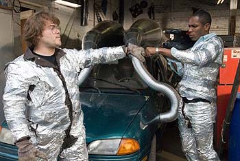 „Ghostbusters“ im Eigenbau: Jack Black und Mos Def in „Be Kind Rewind“ „Be Kind Rewind“ ist eine einfallsreiche, verrückte Komödie mit gut platzierten Gags und unbedingt ein Ensemblefilm. In der sympathischen Crew um Jack Black, den Gondry schon während des Drehbuchschreibens für die Rolle des Jerry haben wollte, agieren u.a. der auch als Rapper bekannte Mos Def, der ergraute Danny Glover, die ungebrochen zauberhafte Mia Farrow und die 23-jährige Melonie Diaz. Gondry vertritt seine cineastisch-anarchische Grundidee, bekannte Filme einfach mal neu zu drehen, aus Überzeugung. Am Nachahmen sei doch nichts Negatives, wenn daraus eine neue Kreation werde. Und erneut zeigt sich Gondrys Zugang zum phantastischen Kino, wenn er die unrealistische Idee, Filme könnten in kürzester Zeit erfolgreich von Laien neu produziert und auf den Markt gebracht werden, in ein realistisches Setting packt mit sichtlichem Vergnügen. So geht es in „Be Kind Rewind“ längst nicht nur um die Faszination des Kinos und die Liebe zur Musik, sondern auch um Kreativität als Gemeinschaftserlebnis. „Be Kind Rewind“ lautet in den USA die Aufschrift auf den Leihvideos. Der deutsche Verleih hat einen ebenbürtig-doppelsinnigen Titel gefunden: „Abgedreht“ läuft ab 3. April 2008 auch in den deutschen Kinos. (gls) Be Kind Rewind, USA 2008, 98 Min., 35mm Cinemascope, Buch, Regie: Michel Gondry, Kamera: Ellen Kuras, Schnitt: Jeff Buchanan, Darsteller: Jack Black, Mos Def, Danny Glover, Mia Farrow, Sigourney Weaver u.a. |