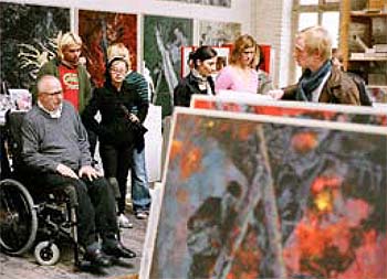 Zwei Künstlerportraits im Filmforum spüren (f)einfühlig weniger den portraitierten Künstlern nach als dem, was Kunst ist oder sein könnte, dürfte, müsste, sollte ... Der Lübecker Bildhauer mit spanischen Wurzeln Guillermo Steinbrüggen schafft großformatige Plastiken und kleine Bilder, bei Jörg Immendorff sind die Gemälde überdimensional, die Plastiken selten und klein. Ein Gegensatz, der sich bei den beiden Künstlerportraits im Filmforum nur zufällig ergibt. Denn die Frage, wie man sich einem bildenden Künstler im Film nähert, beantworten die Dokumentarfilme von Oliver Rduch und Nicola Graef ganz unterschiedlich und doch ähnlich und regen gerade deshalb zum Vergleich an.