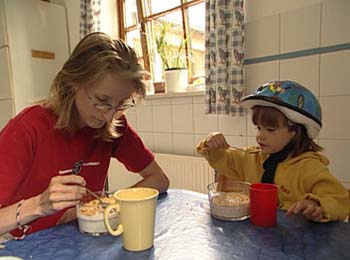 Was „außen, im wirklichen Leben“ viele meistern, Einkauf, Wäschewaschen und Kinderbetreuung, ist für Christina, Michaela und Andrea nur schwer zu bewältigen. „Draußen“ sind sie gar nicht klar gekommen, im Schutzraum des Waldhofs gelingt es - unter großen Mühen. Michaela erzählt beim Abwasch ihre Geschichte. Mit Geld konnte sie nie umgehen. „Für irgendwas“ hat sie die gesamte „Stütze“ an einem Tag ausgegeben. Im Waldhof bekommt sie ein streng zugeteiltes Taschengeld. Nur solche Einschränkung macht ihr ein „normales“ Leben möglich. Ihr Kind war „schon ein Wunschkind, aber nicht so früh“. Die neue Verantwortung hat sie vollends überfordert. Doch im Waldhof könnte es glücken, Mutter zu sein trotz „Behinderung“, stolz und mit einem witzig-ironischen Blick auf die eigenen Defizite.