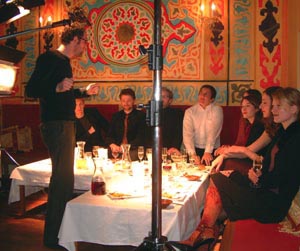 Carstens inszeniert sein Ensemble (3.v.l.: Matthias Harrebye-Brandt) (Fotos: dakro)Die Darstellerin der Titelrolle wird allerdings nicht am Set erwartet. Jedem Filmemacher ist klar, dass Katzen vor der Kamera ein unkalkulierbares Risiko sind. Hier wird der digitale Zauberstab helfen, in der Post-Production werden Blue Screen-Aufnahmen einer Katze in den Film eingefügt. Die Post Production wird voraussichtlich im Mai abgeschlossen sein. (