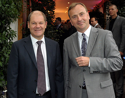 Über 450 Gäste beim vierten Jahresempfang der MA HSHBeim vierten Jahresempfang der Medienanstalt Hamburg / Schleswig-Holstein (MA HSH) konnte Direktor Thomas Fuchs am 23.8.2011 über 450 Gäste begrüßen – eine bunte Mischung aus Politik, Medien, Wissenschaft und Gesellschaft, die im Park Café Schöne Aussichten in Planten un Blomen in Hamburg bis in den frühen Morgen feierte. Dabei waren Carola Veit, Präsidentin der Hamburgischen Bürgerschaft, Dr. Dorothee Stapelfeldt, Senatorin für Wissenschaft und Forschung, zahlreiche Abgeordnete des Bundestags und beider Landesparlamente, Inmi Patterson, Generalkonsulin der USA, Jürgen Doetz, Präsident des Ver bands Privater Rundfunk und Telemedien (VPRT), die Geschäftsführer vieler privater Rundfunk veranstalter aus Hamburg und Schleswig-Holstein und Vertreter des NDR. Ein Grußwort hielt Hamburgs Erster Bürgermeister Olaf Scholz: „Die Medienanstalt Hamburg / Schleswig-Holstein ist eine Besonderheit, weil sie auf der engen Zusammenarbeit zweier Bundesländer beruht. Wir haben dieser Kooperation in 2011 mit dem nunmehr 4. Medienänderungsstaatsvertrag zwischen Hamburg und Schleswig-Holstein eine neue feste Grundlage gegeben. Damit setzen die beiden Länder ihre erfolgreiche Zusammenarbeit im Medienbereich fort.“ Scholz fügte hinzu: „Nirgendwo sonst in Deutschland kann man die Chancen und die Herausforderungen des Zusammenwachsens der verschiedenen Mediengattungen und -sparten so gut erleben wie in Hamburg. Wir werden auch hier wieder den nächsten Schritt vorausdenken. Gemeinsam mit einer starken Medienanstalt.“ ![]() Olaf Scholz (l.) und Thomas Fuchs beim Jahresempfang der MA HSH (Foto: MA HSH)Fuchs betonte in seiner Rede, dass der Jugendmedienschutz im Internet die Arbeit der MA HSH auch in quantitativer Hinsicht immer mehr bestimme. So habe sie im letzten Jahr über hundert Telemedienangebote formal geprüft. Auch bundesweit belegten die Zahlen der Kommission für Jugendmedienschutz die steigende Anzahl der Telemedienfälle. Nicht zuletzt aus diesem Grund sei es von Bedeutung, dass man bei der Entwicklung von Jugendschutzprogrammen und Altersklassifizierungssystemen einen großen Schritt vorangekommen sei. (nach einer Pressemitteilung der MA HSH) |