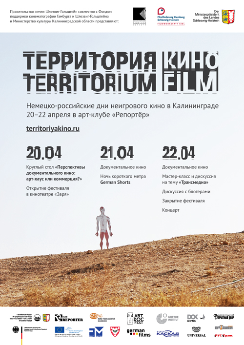 2. Deutsch-russische Dokumentarfilmtage „Territorium Film“20. bis 22. April 2012 in KaliningradProgramm ![]() Freitag, 20.4.2012 11.00, Ort: Kino Zarya, Pr. Mira 41/43, Tel. +7 4012 21-45-88, +7 4012 30-03-88: „20 Geigen auf St.-Pauli“, 75 Min., Alexandra Gramatke, Barbara Metzlaff, D 2011. Vorführung für Jugendliche und Studenten, die Deutsch lernen, anschl. Diskussion. Der Film wird von Barbara Metzlaff vorgestellt. 15.00, Ort: Art-Club Reporter, ul. Generalleutnant Ozerova 18, Tel. +7 4012 57 16 01: Pressekonferenz. Gäste der Filmtage. 16.00, Ort: Art-Club Reporter: Runder Tisch zum Thema „Die Zukunft des Dokumentarfilms: Neue und alte Märkte“, Diskussion mit Teilnehmern der Filmtage, Intellektuellen, Bloggern, Journalisten in Kooperation mit dem INTERREG-Projekt „First Motion“. 19.00, Ort: Kino Zarya: Begrüßung zu „Territorium Film 2012“ durch Bernd-Günther Nahm und Elena Gromowa. „Small Town“, 6 Min., René Raab, DE 2012. Offizielle Eröffnung durch Kulturministerin Svetlana Kondratjewa, Staatssekretär Heinz Maurus und Konsul Wolfgang Birmans. „Lift Arzutanowa“, 14 Min., Darja Jemeljanova, RUS 2009. „Glubinka“, 43 Min., Evgenij Solomin, RUS 2009, in Anwesenheit des Regisseurs. 21.00, Ort: Kino Zarya: Gemeinsamer Empfang von Europastaatssekretär Heinz Maurus und dem ständigen Vertreter des deutschen Generalkonsuls, Wolfgang Birmans. Teilnahme auf Einladung. 23.00: After Party: Konzert im Art-Club Reporter. Samstag, 21. April 2012 15.30, Ort: Art-Club Reporter: „Den Shakhtyora / Miner Day“, 56 Min., Andrey Gryasev, RUS 2010. 16.30, Ort: Art-Club Reporter: „Tramvajnyj Prospektâ€, 37 Min., Sofia Geweiler, RUS 2010, in Anwesenheit der Regisseurin. 18.00, Ort: Art-Club Reporter: „Bachâ€, 6 Min., Antoni Djakov, RUS 2010. „August 17“, 63 Min., Alexandr Gutman, RUS 2009, in Anwesenheit des Regisseurs. 20.00, Ort: Art-Club Reporter: „Bingo – Toletzt entscheed jümmers dat Glück“, 84 Min., Gisela Tuchtenhagen, Margot Neubert-Maric, DE 2011, in Anwesenheit von Regisseurin Neubert-Maric und Produzentin Linda Matern. 23.00, Ort: Art-Club Reporter: Kurzfilmnacht von der KurzFilmAgentur Hamburg, vorgestellt von Alexandra Gramatke – u.a. im Programm der Kaliningrader Kurzfilm „Woody Before Allen“, 13,5 Min., Maria Wasjukova, RUS 2011. Sonntag, 22. April 2012 16.00, Ort: Art-Club Reporter: „Fish & Onions“, 52 Min., Marc Brummund, DE 2011, in Anwesenheit des Regisseurs. Anschl. moderierte Diskussion zum Thema „Transmedia“, in Kooperation mit dem INTERREG Projekt „First Motion“. 18.00, Ort: Art-Club Reporter: „Das Ding am Deich“, 96 Min., Antje Huber, DE 2012, in Anwesenheit der Kamerafrau Barbara Metzlaff. Anschl. moderierte Diskussion mit Kaliningrader Bloggern. 21.00: Abschlussveranstaltung im Art-Club Reporter. Infos (in russischer Sprache): www.territoriyakino.ru. |