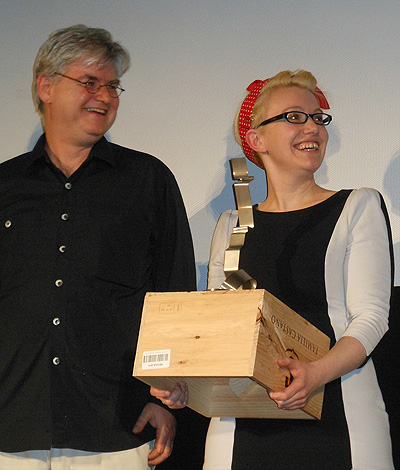 Wenn man Filme einfach machen mussKurzfilmwettbewerb „Nur 48 Stunden“: „Der Mann, der zu viel musste“ gewann den Jürgen-Prediger-FilmpreisWarum tut man sich das an? Einen Kurzfilm im äußerst engen Zeitfenster von der Drehbuchidee übers zeitraubende „Rendern“ bis zur Abgabe auf DVD zu machen – beim Anfang Mai zum neunten Mal vom Kulturbüro des Studentenwerks S.-H., dem Landesverband Jugend und Film und dem Offenen Kanal veranstalteten Filmwettbewerb „Nur 48 Stunden“. Die Macher der 15 Kurzfilme, die, ausgewählt von einer Vorjury aus den 29 eingereichten Beiträgen, am 13.5.2015 im ausverkauften metro-Kino um den neu gestifteten Jürgen-Prediger-Filmpreis wetteiferten, sind sich einig: „Weil man einfach muss!“ Trotz Produktionsstress pur – manche Teams brannten nicht nur für ihren Film, sondern auch die DVD noch fünf Minuten vor Abgabe – sind Filmkunstwerke entstanden, welche die dreiköpfige Jury (Filmemacher Gerald Grote, Filmproduzentin Kirsten Burow und Full-Dome-Media-Produzent Ralph Heinsohn) vor eine schwere Auswahlaufgabe stellten. Auch wenn der Anspruch, das Filmschaffen einer durchweg sehr jungen schleswig-holsteinischen Szene im Kinoformat zu präsentieren, anfangs an den Tücken der digitalen Vorführung zu scheitern drohte, hier war ganz großes junges Kino zu sehen. Den 3. Preis der Jury wie auch den von den Veranstaltern ausgelobten Nachwuchspreis gewann die erst 15- bis 16-jährige Pinneberger Crew um Christian Kipke für „Limbus“. David Lynch nennen sie nicht zu Unrecht als ihr Vorbild für diesen (Alp-) Traum in Schwarz-Weiß über den Tod und ein herausgerissenes Herz. „Romantik ist wichtig, zumal so gut verbunden mit Witz“, lobt Ralph Heinsohn den Animationsfilm „Die Welt in Bildern“ (2. Preis). Martina Harand und ihr Team blättern darin durch ein altes Panini-Bild-Album (wohl die beste Umsetzung der Wettbewerbsvorgabe, dass ein „Sammelbild“ im Film vorkommen müsse), dessen Inhalt witzig animiert zum Leben erweckt wird – Film als „bewegtes Bild“ wörtlich genommen. Getoppt wird solcher Bild- nur vom Erzählwitz Jessica Dahlkes (Produktion, Kamera) und Benjamin Bräuers (Regie), die Monty Python wie Hitchcock in „Der Mann, der zu viel musste“ nacheifern. Solche Geschichte von einem Mann (Thies John), der mitten in einem „peinlichen Verhör“ immer wieder dringend Wasser lassen und dadurch das Verhör stets von Neuem durchleben muss, überzeugte die Jury wie auch das Publikum – denn neben dem Jürgen-Prediger- gewannen Dahlke & Co. auch den Publikumspreis – mit einer „vom Spiel wie vom Text her sehr runden Geschichte, die auch in 92 Stunden Produktionszeit nicht besser hätte werden können“. ![]() Erste Preisträger des neu gestifteten Jürgen-Prediger-Filmpreises: Kamerafrau Jessica Dahlke und Protagonist Thies John. (Foto: jm)Der verstorbene Kieler Schauspieler und Künstler Jürgen Prediger, der zu Lebzeiten immer bereit war, für jedes Filmprojekt, von ernsthaft bis absurd, zu mimen, wie Gerald Grote dem Namensgeber der Trophäe nachruft, hätte wohl wie das Publikum im metro-Kino seine Freude daran gehabt. (jm) Alle 29 zum Wettbewerb „Nur 48 Stunden“ eingereichten Kurzfilme sind am 16.5.2015 von 19 bis 22 Uhr im Offenen Kanal (Kiel, Kabelkanal 9) zu sehen. Infos: www.nur48stunden.de. Auf filmszene-sh.de findet sich hier eine Linkliste zu den Kurzfilmen des Wettbewerbs „Nur 48 Stunden“. |