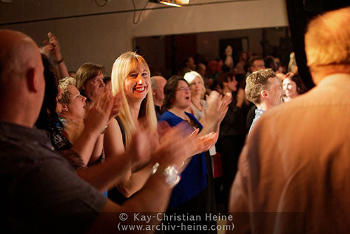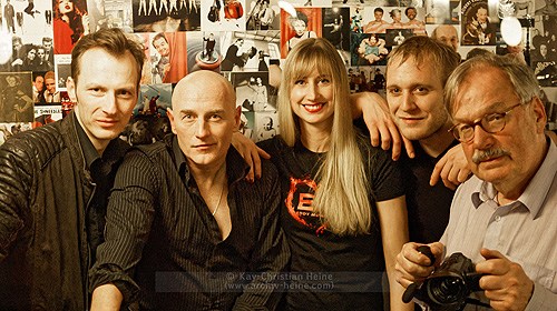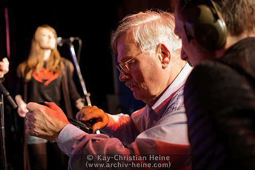 Oliver Boczek und Bernd Fiedler drehten ein Musikvideo mit Eddy MonrowRock’n’Roll und pralles LebenWenn ein Medienprofi sich als Rockmusiker eine Band leistet, lässt das ausgefeilten Sound und wirksame Choreografien erwarten. Der Lehmkuhlener Wulf Hansen – im bürgerlichen Leben leitet er eine Marketing-Agentur – hat sogar eine musikalische Marke aus sich gemacht. Als Rockpoet Eddy Monrow zeigte er mit seiner Band kurz vor Weihnachten 2014 im Lutterbeker, dass „EM“ weit mehr verkörpert als nur Vermarktungsstrategie – nämlich Musik mit Leidenschaft, Herzblut, Kraft und viel menschlicher Wärme. Wer Eddy Monrow und Band unbedingt in eine musikalische Schublade stecken möchte, darf sie am ehesten mit „Deutschrock“ etikettieren. Aber „EM“, wie sich Monrow und Band nennen, erfüllt kaum Klischees. Sicher, er singt von Liebe, sogar auf Deutsch. Und klar, ein wenig Pathos gehört auch bei Eddy dazu. Davon zeugt schon das lodernd die Buchstaben „EM“ umschließende Flammenherz, das von der Bass Drum aus dem Bühnen-Setup herab das Publikum anlacht. Aber Eddy Monrow reiht sich nur widerwillig ein in Vielgehörtes. Dafür ist seine Musik alles in allem zu rau, unangepasst und frech — trotz der Ohrwurmqualitäten einiger Songs. Vor einem Jahr hat Eddy Monrow sein Album „Flowerpunk“ herausgebracht und damit den vorläufigen Höhepunkt in einer Musikerkarriere markiert, die vor 30 Jahren im Lutterbeker ihren Anfang nahm. Auf der CD versammelt Eddy — und das ist neu für ihn — 15 nur auf Deutsch getextete Songs, in denen sich alles um Liebe, Freiheit, Toleranz und jede Menge Lebensgefühl dreht. „Flowerpunk“ hat alles, was ein Album erfolgreich machen kann: Solide Musiker um den Gitarristen Thomas Friedrichsohn — er begleitet Eddy Monrow schon seit etlichen Jahren — liefern handwerklich saubere, rockige, bluesige bis balladeske Arrangements, die Backgroundsängerinnen Stephie Brauer und Steffi Friedrichsohn sorgen für sehens- und hörenswerte Hollywood-Momente, und Eddy Monrow selbst ist ein charismatischer Frontmann mit Stimme und Entertainer-Qualitäten. Seine vielleicht größten Pfunde aber sind Glaubwürdigkeit als Musiker und eine lebendige Nähe zum Publikum, die für ihn Lebenselixier zu sein scheint und schlicht begeistert. Besonders machten das Konzert im Lutterbeker die hiesigen Filmemacher Oliver Boczek und Bernd Fiedler, die während des Konzerts Material für ein Musikvideo zu Monrows „Lass mich nur dein Herz berühren“ drehten. ![]() Spätnachts im Lutterbeker: Filmemacher Oliver Boczek (von links), Eddy Monrow, die Schauspieler Hanna Tasyürek und Lasse Wagner sowie Kameramann Bernd Fiedler nach dem Dreh des Musikvideos zu „Lass mich nur dein Herz berühren“Für Boczek, verantwortlich für Buch und Regie, erwies sich dabei die Zusammenarbeit mit den Schauspielern Hanna Tasyürek und Lasse Wagner als Glücksfall. „Beide waren sehr engagiert und haben bei allem mit angepackt“, lobte er nach dem Dreh. Kameramann Bernd Fiedler würde mit beiden gar, wie er sagt, „eine Wüste durchqueren“ — was etwas heißen soll, denn Fiedler schaut auf rund 50 Jahre Erfahrung hinter der Kamera zurück. ![]() Nah am Geschehen: Die Filmemacher Oliver Boczek (rechts) und Bernd Fiedler beim Viedeo-Dreh am SetWährend Hanna beim Theater Kiel und als Ballett-Tänzerin Bühnenerfahrungen sammelte, hat Lasse an der Schule für Schauspiel Kiel studiert. Vor allem dann, wenn es vor Bernd Fiedlers Kamera schnell gehen musste, sei es mit beiden ein „schönes Arbeiten“ gewesen, bilanziert Boczek den insgesamt 14-stündigen Drehtag. ![]() Geheimnisvolle Schöne: Schauspielerin Hanna Tasyürek inmitten des Publikums währenddes Drehs zum „EM“-MusikvideoInfos im Netz gibt es unter www.eddy-monrow.com und www.oliverboczek.com. Das Musikvideo steht bei YouTube hier online. (Text & Fotos: Kay-Christian Heine, www.archiv-heine.com) |