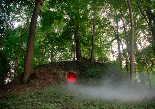 AV-Installation „Rites de passage II – The cave“ von Sabine LinseIntervention und Filminstallation am Eiskeller Gut Hemmelmark (Barkelsby, Kreis Rendsburg-Eckernförde, SH) Ein Projekt der Gesellschaft für zeitgenössische Konzepte e.V. Eröffnung: 8. August 2015, 17 Uhr Begrüßung: Verena Voigt M.A., Gesellschaft für zeitgenössische Konzepte e.V. Einführung: Arne Sommer, Leiter der Filmwerkstatt Kiel Sabine Linse: „Rites de passage II – The cave“ Rites de passage – Übergangsriten. Der Verweis auf das 1909 erschienene Buch „Les rites de passage“ des französischen Ethnologen Arnold van Gennep (1873-1957) webt sich wie ein unsichtbarer Faden in das Kunstprojekt von Sabine Linse ein. In dem magisch-wuchernden Bildkosmos der Berliner Künstlerin scheinen sich unbekannte Rituale zu vollziehen, die sich einer rationalen Ableitung entziehen und eher animistischen Naturereignissen gleichen. Irgendetwas, dessen Erklärung man irgendwie verpasst hat, das aber Abstand und Respekt verlangt, scheint sich stets in die inszenierten Bildgeschehen einzuschleichen und die ästhetische Wahrnehmung auf sich zu ziehen und magisch zu binden, den Betrachter zu verzaubern. Sabine Linse holt weit aus. Mit ihrer Intervention an diesem entlegenen Ort, irgendwo in Schleswig-Holstein, am Eiskeller von Gut Hemmelmark in Barkelsby, unweit von ihrem Geburtsort Eckernförde, greift sie auf ein spätmittelalterliches Gemälde zurück: das „Jüngste Gericht“ (1485-1505) von Hieronymus Bosch. In der unteren Hälfte der rechten Tafel des Triptychons befindet sich der Eingang zur Hölle, den der Weltenrichter für die Sünder und Verdammten reserviert hat. Im Rahmen ihrer Beschäftigung mit dem Eiskeller auf Gut Hemmelmark hat Sabine Linse eine assoziative Identifikation des Eiskellerhöhleneingangs mit dem zur Schwelle der Neuzeit von Bosch entstandenen Endszenarios vorgenommen und gedanklich mit den Analysen des Ethnologen van Gennep verbunden. Während van Gennep die Übergangsriten als Mechanismus aus Trennungsriten, Schwellen- oder Umwandlungsriten und Angliederungsriten begreift, konzentriert sich Sabine Linse in ihrem Konzept auf die Übergangsphasen. Die Licht-Nebel-Sound-Installation verwandelt den Eingangsbereich des Eiskellers zu einem unbetretbaren Ort der Transformation. Im Gang des Eiskellers sorgen eine Nebelmaschine und Rotlichter dafür, dass man nicht ins Innere des Berges sehen kann. Der Nebel dringt mal mehr, mal weniger nach außen und wird vom Wind durch die Landschaft getragen. Der Eiskeller auf Gut Hemmelmark gehört zu den wenigen Eiskellern, die in ihrer Form noch erhalten sind. Sein Inneres ist nicht betretbar. Ein Sturm hatte einst das Gewölbe zum Einsturz gebracht. Übrig geblieben sind der bauchige Hügel und das Eingangstor des historischen Gemäuers. Die „Schwelle“ wird zum Schauplatz einer ungreifbaren Intervention, die filmisch festgehalten wird. ![]() Sabine Linse: „Rites de passage II – The cave“, Installationsansicht, Eiskeller Gut Hemmelmark, 2014 (Foto: Sabine Linse)Während der ersten Begehungen in Hemmelmark wimmelte es vor Fröschen. Zeitgleich beschäftigte sich die Künstlerin mit der manieristischen Bildvorlage des Hieronymus Bosch und identifizierte nicht nur die Form des Eingangsportals, sondern auch das Froschornament im Höllentorbogen des „Jüngsten Gerichts“. In der Ontogenese des Froschs scheint symbolisch die wandlungsfähige Urschicht im Menschen eingeschrieben. Wiederholt er doch in seiner phylogenetischen Entwicklung den Übergang vom Wasser- zum Landtier, vollzieht damit einen Dimensionssprung und wird damit zu einem Musterbeispiel gelungener Transformation. Die subtile (künstliche) Soundkulisse, das sich wiederholende, fast monotone Quaken der Frösche, erzeugt eine fast einschläfernde meditative Atmosphäre. Im Kontext der Übergangsriten scheint das passende Symbol mutiger Absicherungen transformativer Lebensphasen gefunden. Am 8. August 2015 wird dieses Szenario einmalig uraufgeführt. Dokumentiert wird die Installation in einem Kunstvideo. Die Künstlerin schreibt zur filmischen Transformation: „Die Blende ist so eingestellt, dass zu Beginn der Abenddämmerung die Landschaft ’normal‘ hell zu sehen ist, im Laufe der Dämmerung wird sie immer dunkler. Einzige Konstante ist das rote Licht, also der innere Bereich des Berges, der sich dem Auge entzieht und der Imagination damit freien Raum lässt. Bei beiden Videos (Winter wie Sommer) handelt es sich um jeweils eine Einstellung. Es entsteht somit eine Art Fotografie, der man die Zeit zurückgegeben hat. In beiden Sequenzen werden die Zeiten der Dämmerung bis zur absoluten Dunkelheit dokumentiert wird. Morgen- und Abenddämmerung werden direkt aneinander gehängt und als Loop geschnitten, so dass eine surreale Dokumentation des Ortes entsteht. In der Fokussierung allein auf die Lichtveränderungen gibt es weder Tag noch Nacht, sondern nur unterschiedliche Qualitäten der Dämmerung. Als Zeit des Übergangs ist sie auch eine Zeit zwischen den Welten und damit des Eintritts mythischer, magischer Vorgänge.“ Der eingestürzte Eiskeller auf Gut Hemmelmark wird damit zu einem idealen Reflexionsort für Transformationsprozesse. Die Gesellschaft für zeitgenössische Konzepte e.V. entwickelt seit 2012 ortsbezogene Kunstprojekte in historischen Eiskellern in Schleswig-Holstein (siehe Publikation „Eiskeller & Himmelslöcher“, Revolver Publishing, 2014). Als Laboratorien für künstlerische Experimente werden die z.T. verfallenen Gemäuer zu diskursiven „Klimastationen“, die das vergessene Architekturdenkmal mit philosophischen, gesellschaftlichen und wissenschaftlichen Zukunftsfragen verbinden. Sabine Linse hat in Berlin und Barcelona studiert; sie war Meisterschülerin von Rebecca Horn und u.a. durch das Else-Heiliger-Stipendium gefördert. Ihre Produktionen wurden in zahlreichen Einzel- und Gruppenausstellungen international präsentiert, sowie durch diverse Stipe