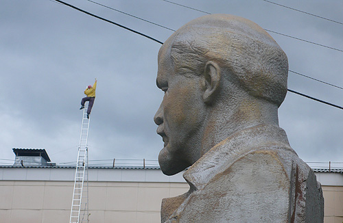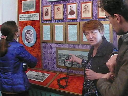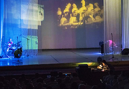 Voll verstrahltFilmgruppe Chaos in der sibirischen Pampa in KanskAus 3.000 eingereichten Filmen wurde ein Beitrag der Kieler Filmgruppe Chaos von einem Festival in Sibirien ausgewählt. Die Festivalorganisatoren luden die Gruppe zur Teilnahme am Event in der russischen Taiga. Hier ein Bericht von der Reise in das Zentrum des asiatischen Kontinents, die bereits einige Zeit zurück liegt. Die Stadt Kansk liegt am Kilometer 4.344 der Transsibirischen Eisenbahn und gilt als historischer Ort der Verbannung mit berüchtigten Gulag-Straflagern. Diesen abgelegenen Ort verwandelten Moskauer Filmenthusiasten im Laufe der letzten 14 Jahre in ein Zentrum für das zeitgenössische Bewegte Bild. Im Russischen spricht sich Kansk so wie Cannes aus, und darauf spielt das Logo der Kansk International Video Festivals an, eine Gartenschere, die den goldenen Palmenzweig von Cannes zerschneidet. Das russische Festival gefällt sich in rebellischer Haltung und pflegt gleichzeitig den Glamour eines bedeutenden Kulturevents. ![]() Festivaleröffnung mit „Der Finger“ (Fotos: Karsten Weber)Uns war aufgetragen, dieses Festival mit einer filmischen Live-Performance zu eröffnen. Das Duo für experimentelle Musik mit dem deutschen Namen „Der Finger“ ist dreieinhalbtausend Kilometer aus Moskau angereist, um zu unseren Projektionen einen Soundtrack zu improvisieren. Wir quälten uns durch einen Tag der Vorbereitung mit vier ukrainischen Filmprojektoren, von denen einer sich mit unheimlichen Geräuschen und einer schwarzen Rauchwolke verabschiedete. Nach unzähligen Filmrissen bekamen wir die betagte Technik in den Griff. Die mit Farbfiltern und Tricklinsen verfremdeten Ausschnitte eines klassischen russischen Spielfilms füllten die riesige Bühne des Kulturpalastes aus Sowjetzeiten. Die jazzigen und düsteren Klänge des Moskauer Duos verliehen den flackernden Bildern eine bedrohliche und geisterhafte Atmosphäre. Frenetischer Applaus und Bravo-Rufe zeigten, dass unser Experiment der Dekonstruktion sowjetischen Filmschaffens aufging und nicht als Respektlosigkeit empfunden wurde. ![]() Filmgruppe Chaos (Sascha Wölck, Karsten Weber) und „Der Finger“ auf der BühneDen Internationalen Gästen des Festivals wurde ein ausgiebiges Kulturprogramm geboten – mit Stadtführung und Ausflügen in Sibirische Dörfer. Sibirien ist eine andere Welt. Die Temperaturen im Sommer gehen über 30 Grad Celsius und fallen auf unter minus 40 Grad Celsius im Winter. Die Dörfer mit den windschiefen Holzhäusern wirken wie aus der Zeit gefallen, und in der Region scheint die Sowjetunion weiterzuleben. Die meisten PKW und die das Stadtbild prägenden Busse, alle mit Schaffnerinnen für den Fahrkartenverkauf, sind mehr als drei Jahrzehnte alt. ![]() Lenin und „Der goldene Reiter“ („Hey, hey, hey, ich war so hoch auf der Leiter“ – Joachim Witt)Lenin-Statuen und Denkmäler der Sowjetunion werden gepflegt, und insbesondere der Große Vaterländische Krieg, für den Kansk einen hohen Blutzoll gezahlt hat, ist allgegenwärtig in Mahnmalen und Alltagskultur. In unserem Hotel wachte eine Lenin-Büste über die Hotelküche. Nicht nur klimatisch verlangt die Region ihren Einwohnern einiges ab, die ökonomische Situation vieler ist nicht einfach bei einem Monatslohn von rund 100 EUR für einen Arbeiter. Bei vielen sozial abgehängten Menschen fallen Nationalismus und der Traum von den großen Zeiten der Sowjetunion auf fruchtbaren Boden. Der Haustechniker des Festivalortes trug ein CCCP-Shirt mit Hammer und Sichel. ![]() Auch in der Hotelküche präsent: LeninDie Gegend ist auch berühmt für ihre Gulags. In einem historischen Museum wird mit Erinnerungen an diesen Teil der Geschichte nicht gespart. Der Reiseleiter ließ manch zynischen Kommentar über die Stalin-Zeit fallen. Die Region ist von den revolutionären Wirren stark in Mitleidenschaft gezogen worden. Ganze Dörfer sind in den Auseindersetzungen zwischen der alten Ordnung und den Umstürzlern dem Erboden gleichgemacht worden. Wir wurden mit einem Pferdegspann zu einem Holzhaus gebracht, um einer kleinen Zeremonie beizuwohnen. Die Ur-Ur-Enkelin eines bekannten Revolutionärs enthüllte eine Gedenktafel am Wohnhaus ihres Vorfahren. Der revolutionäre Umsturz der Zarenherrschaft ist ebensowenig vergessen, wie der der faschistische Überfall auf Russland. Das wurde auch zum Thema bei einer Party der Filmemacher. Man entschuldigte sich bei uns für die Opfer durch russische Soldaten. Als ich sagte, dass ich mich für die Beendigung der faschistischen Herrschaft bedanke, bedankte man sich mit einer langen russischen Umarmung. ![]() Fußkette eines GulagsDie Filmemacher sind eingeflogen worden aus den Regionen Russlands, aus Lateinamerika, Europa und Israel, und in der Jury saßen bedeutende Vertreter russischer Kultur, wie auch eine Kuratorin der Berlinale. Unser Beitrag für das Wettbewerbsprogramm war der Kurzfilm „Angst“, eine Hommage an den klassischen Horrorfilm. Die russischen Filmbeiträge waren geprägt von einer surrealistischen Erzählweise und einem tiefschwarzen Humor, gespickt mit Anspielungen auf die politischen Verhältnisse. Ein subversiver Umgang mit den Möglichkeiten des Mediums scheint für russische Filmemacher eine Selbstverständlichkeit zu sein. Sie haben sich oft arrangieren müssen mit schwierigen politischen Verhältnissen, und der Staat zeigt sich zunehmend von seiner repressiven Seite. Im letzten Jahr wurde ein Gesetz erlassen, dass die Benutzung von Flüchen, an denen die Alltagssprache reich ist, im Film und auf der Bühne unter Strafe stellt. Die Verurteilung des ukrainischen Filmregisseurs Oleg Senzow zu 20 Jahren Haft führte zu einer Protesterklärung der Festival-Jury, die an Schärfe nichts zu wünschen übrig ließ. Man war schockiert, dass in Rußland unter Putin rigoroser gegen Künstler vorgegangen wird als unter Stalin, bei dem die höchste Haftstrafe für einen Filmemacher zehn Jahre betrug. ![]() Filmarchiv aus SowjetzeitenEin de