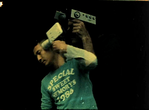 Inferno [ir]rationaleDie DVD „Rationen“ der Filmgruppe Chaos angeschaut und live kommentiertMachen wir es doch mal in der Besprechung genauso wie die Kieler Filmgruppe Chaos – gegen alle Regeln der Rezension, Rationen gegen die Ratio ... stricktly Cut.Up – eine assoziative Annäherung an ein außergewöhnliches Filmwerk: Einlegen und -loggen in den Schacht, aus dem das kömmbt | „Kill Kino Kill Kill“ gucken | Soundtrack, gewalttätig, Hollywood oder anderer Horror der Filmgeschichte | zermartert das 16mm-Material wie dann weiter | mit Filzstift, Messer oder schlimmeren Werkzeugen und Chemikalien | Das Kino zertrümmern! | Motto ... || ![]() „Stanz“ und „Stanz 2“ | Löcher ins Material zu Beats, die ähnlich löchrig | und Übermalung mit Filzer | bis man nichts mehr sieht | um – endlich – zu sehen | Musik: Clay Gold | also zu hören || ![]() +++ Ticker-Notiz +++ achtes, also achtbares Glas Rott.Wein +++ | und „Zeitgeister“ | eine Art in Stein gehau’nes Requiem | Doch die Toten zwitschern (Soundtrack) garstig und chines- oder japan- und jüdisch | Wie Wien, Zentralfriedhof | Engel aufflackern | nur am Anfang zerschreddert durch Zerr-Störung || ![]() So ähnlich „Flutterman“ | passt ins Bild | American Sound.Bit(e)s | Möwe, irgendwie hilflos | Präsidenten-Countdown | We have a Liftoff! || ![]() „Dopplereffekt“ kenn’ ich als studierter Physiker natürlich | aber nicht so optisch | hier das Filmbild sich voraus- und nacheilend, wie der Schall verdichtend und verdünnend | der Tanz | die Wollcken | die das Wollen b&w || ![]() Von ’nem Screening bei Augenweide (heißt jetzt fälschlich Filmfest – die haben eben alle keine Ahnung – Zorn immer noch, nur gegen wen?) als Sprung des „Blauen Peters“ in eine Rhapsodie in Blue-Black-White bekannt | Das Kind erwächst aus sowas wie Uterus zum Embry.Jojo.YOLO || ![]() Wie man im „Making Of“ (Extra der DVD) sieht, Logo-Streifen mit Schädeln aufgeklebt | „Death a Gogo“ | not to go – ich möchte bleiben | im Grab | du bist so tief und schön | in Poetry, „in tongues, they gave us“ | in der Über.Blendung || ![]() „Time Is Now“, daher | +++ neunte, also neue Glasscherbe aus Wein und Weinen und Weihen +++ | Rock-Movie a la Woodstückchen | gegenüber vorigem eher vidiotisch | dennoch jeden heutigen MusiClip in RGB-Schatten stellend || Team-Selfies, übermalt | insofern dem „Making Of“ zugeschlagen | geil aber, in „Shoot“ die Nizo wie eine Pistole sich an den Kopf zu setzen || ![]() „hopstick“ ist artificial art, Lichtschwerter | in die Diagonalen der Zellen | So kurz, so schön || „Adé nun, der Winter ist ein harter Schluß“, singen die Twenty-GesellInnen | b’n’w? Nö: trefflich koloriert | wie „du mein Schatz bleibst hier“ | ach ja, und Schubert ...| Ich weiß einfach zu viel aus all der Kultur || Daher „No Hope For Me“ | Musikvideo schon gar nicht am Rhein, vom Rhein | wer soll des Stromes Cutter sein? | die Blondine, die hier rockig singt? | Oder eben doch die sporadisch chemisch zerstörte Schicht des Films, die über | die vermeintliche Wirklichkeit wie Tesafilm geklebt wird || Besser gefällt mir „Macht“ | dies Stammeln | dies Zögern | dies Nicht-Wissen | diese Ohn-Macht | dies „Ähm ...“ || Wieder Macht in schlimmem Stein | „To Break One’Sword“ auf dem Kieler Rathausplatz | Denke: Fuck those Fighters, they didn’t fight for me | because I don’t fight | and I’m not in the condition to fuck | but to cut! || „Angst“: | Hitch.Cuckold.Sounds | aber nicht seine Bilder | nur Grauen | dem aber sich ausliefern | Lugosi lockt | und da ist noch die Krankenschwester an meinem verstorbenen Leib, in weiße Tücher gewichselt | verstört und zerstört || ![]() Dann doch noch „Kiel“ | „meine Stadt schmeckt nach Salz“ (Klavki) | und nach Passagen | Umkehr, U-Turn, nicht erlaubt | nur Hinwendung in der Holstenstraße || „Wer nichts zu verbergen hat“, wird nicht Künstler, sondern Kleinbürger | oder geht zur dirigistischen statt Director-Polizei | Sixties, als wir noch Polizei- (jetzt Überwachungs-) Staat waren | Sind das nordkoreanische ... nein doch deutsche Gesänge im Soundtrack? || Am „Gummibaum“ wächst hier mein alpenhoher Traum | wohl konsequentest das Filmmaterial mit Fingerprints versehrt | also mit dem unverwechselbar Eigenen | angetastet auf die linnene Wand || „Süperman“ reitet wie einst Jesus auf ’nem Maulaffenfeilhaltendtier ein in die großen Schädelstädte | Vertreibt im Flug, nein, gemeindet zitierend ein, den Dada-Schrei vom HeartfieldMan || ![]() Bleibt Püppi im „Kindertraum“ | Zum DVD-Finale (abgesehen von den instruktiven Extras) wohl das emblematischste Werk | Schwarzbild || || +++ Nachtticker +++ Glas Dutzend duzend +++ Kommen wir also | weil ja auch die Sonne schon aufgeht und das Dunkel des Kinos mit ihrem Licht stört | mal wieder runter auf Presseinfos (das es hier glücklicherweise nicht gibt) Niveau: Kurzum: die FGC hat in 40 Jahren eine experimentelle Filmsprache entwickelt, die ihres Gleichen nicht sucht, weil sie es nicht finden würde. Sie ist im besten Sinne des Wortes einzigartig in ihrer Radikalität, in ihrer Unbedingtheit, in ihrer Abgedrehtheit. Aber brechen wir das ruhig nochmal weiter runter auf die bloße Info, die natürlich viel weniger als mehr sagt: Nach 40 Jahren Malträtierung von Super-8-Material brachte der Erwerb zweier ARRI-16mm-Kameras den Kieler Chaos-Filmern nochmal einen neuen Schub. Denn 16mm lassen sich noch besser verheeren als S8. Entstanden ist mit der DVD zum 40. Geburtstag ein einzigartiges Dokument dessen, was Film noch kann, aber bisher kaum jemand ausprobierte – und das mit analogen, chemischen, kratzmessernden Mitteln. Das kann kein digitaler Effekt reproduzieren. Chapeau, Chapeau, Chapeau vor unseren Kieler Chaos-Künstlern. Das Kino ist „kill, kill“ tot, noch lang lebe es und entwickele sich (in der „russischen Dose“) weiter hier! (jm) Di
