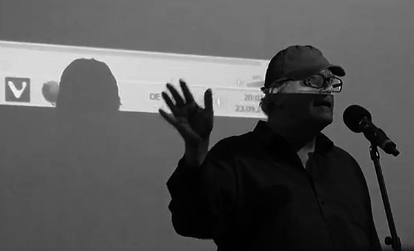 Spokenwords auf der LeinwandWolf Hogekamp zeigte im Koki Poetry ClipsWie kann sich Literatur in ihrer Vermittlung erneuern? Diese Frage stellten sich vor zehn Jahren die Poetry Slammer Bas Böttcher und Wolf Hogekamp. Die Antwort war schnell gefunden: Poetry Slam-Texte sollten nicht nur auf der Bühne neue Hörer finden, sondern als Poetry Clip auch Zuschauer auf den „Leinwänden“ von Youtube & Co. ![]() Wolf Hogekamp performte neben den von ihm präsentierten Poetry Clips „filmisch“ gemachte Texte (Foto: Uwe Lehmann)Beim Spokenwords.sh Festival zeigte Wolf Hogekamp im Koki, wie sich das neue Format, das dem von Musik Clips in manchem ähnelt, entwickelt hat und welche vielfältigen filmischen Möglichkeiten der Visualisierung von Spokenwords es gibt: vom einfachen Abfilmen des Slam-Vortrags bis hin zu animierten Bildmontagen mit dem Text als Off-Ton. Ein Beispiel für ersteres ist „Bismarckallee“, worin Franziska Holzheimer ihren Text über das Leben auf und an dieser Kiez-Straße vor deren Hintergrund geradeaus in die Kamera spricht. Auch in Nora Gomringers „Du baust einen Tisch“ ist der Text-Bild-Bezug recht einfach und klar, indem sie den Text vor der Kulisse eines Baumarkts performt. Tempo gewinnt das Poem durch rasche Schnitte. Eine komplexere Verknüpfung zwischen Text und Bewegtbild findet sich in Jason Bartsch’ „Manche Probleme“, wo mit Porträts des sprechenden Poeten gespielt wird, die aus dem Filmbild ausgeschnitten und auf Papier ausgedruckt neu animiert werden – eine treffende Parabel auf die Komposition eines Gedichts und von Bildern im Film. Der Clip „Spiegel“ vom Slam-Duo Großraumdichten ist nach Hogekamps Einschätzung „schon fast zu komplex und lenkt vom Text ab, der beim Poetry Clip eigentlich immer im Vordergrund stehen sollte“. Wie bei vielen Musik Clips wird hier auf der gesamten – surrealen – Klaviatur des Experimentalfilms gespielt. Aber auch noch eine ganz andere Art der Verbindung von Wort und Film ist möglich, wenn der Text nicht „verfilmt“ wird, sondern sich selbst filmischer Montagetechniken bedient wie in Hogekamps „Cuts 2015“. Mediale Bilder von den Flüchtlingsbewegungen des letzten Jahres reiht Hogekamp – ganz ohne diese Bilder – in „zappenden“ Schnitten zwischen Satzfragmenten. Der Poetry Clip entsteht so nicht auf der Leinwand, sondern „im Kopfkino“. (jm) |